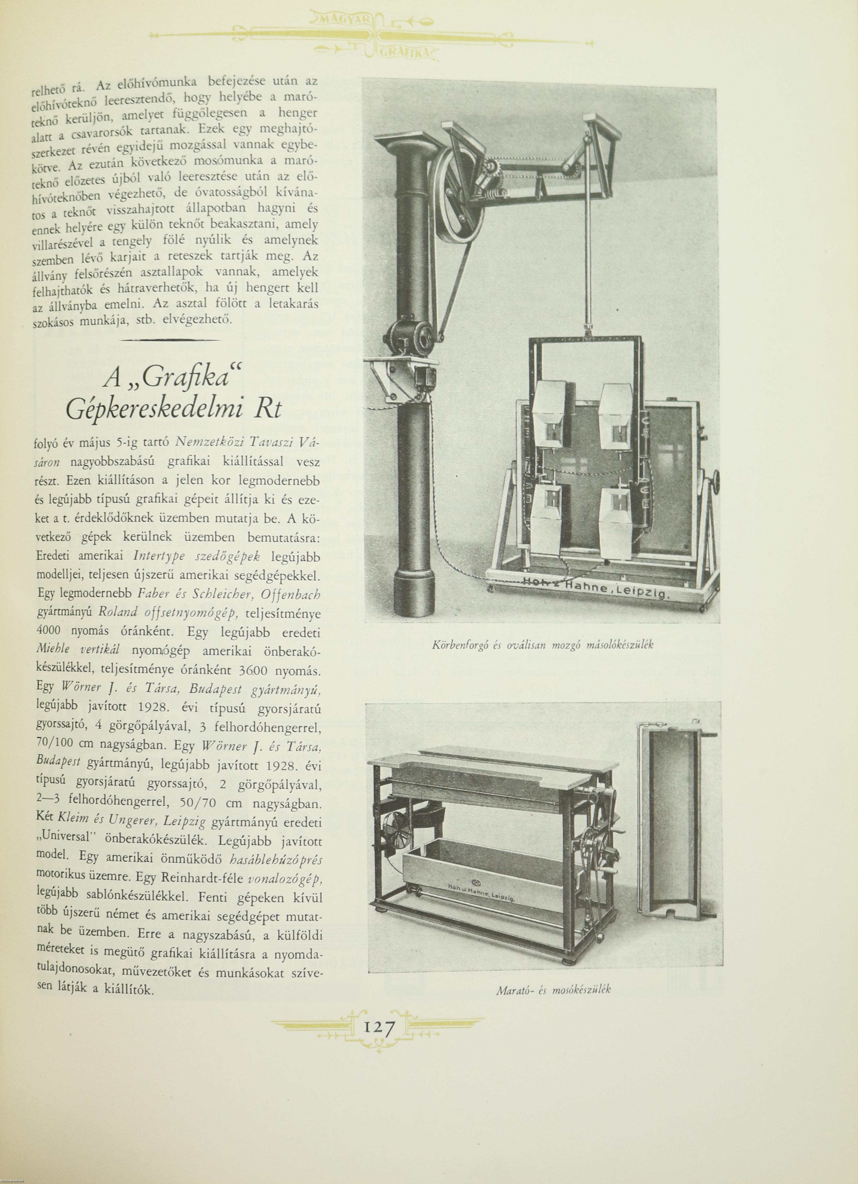 A „Grafika" Gépkereskedelmi Rt. 127