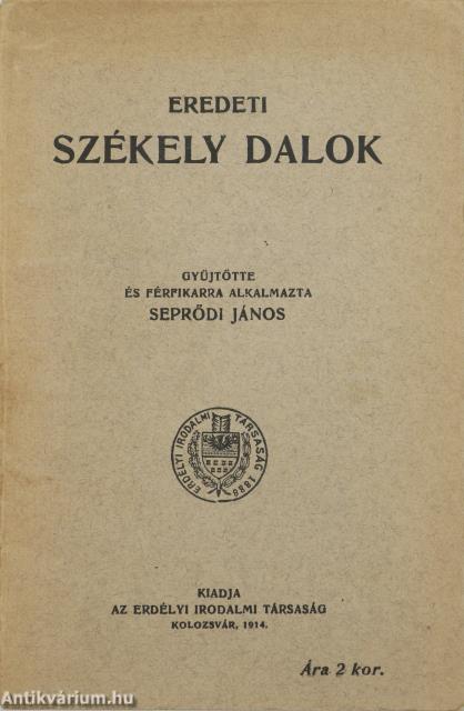 Első kiadás. Eredeti székely dalok. Gyűjtötte és férfi-karra alkalmazta: Seprődi János.