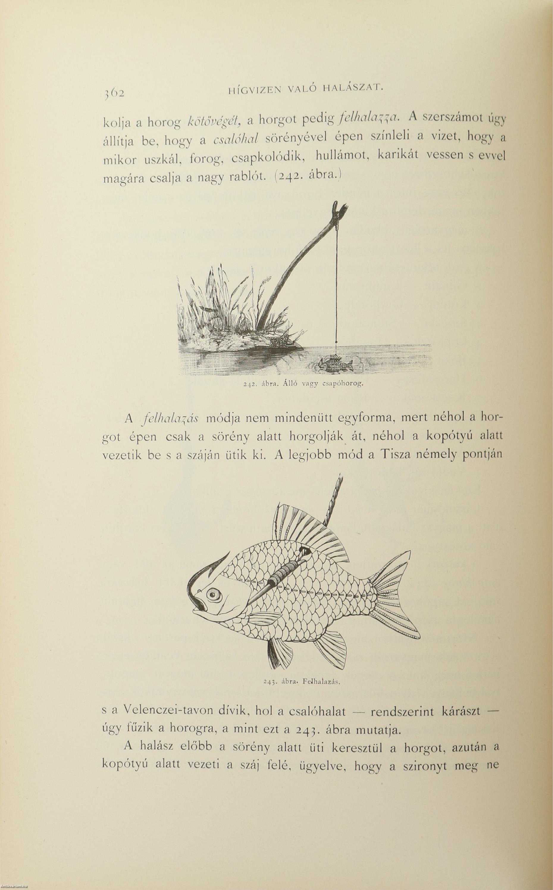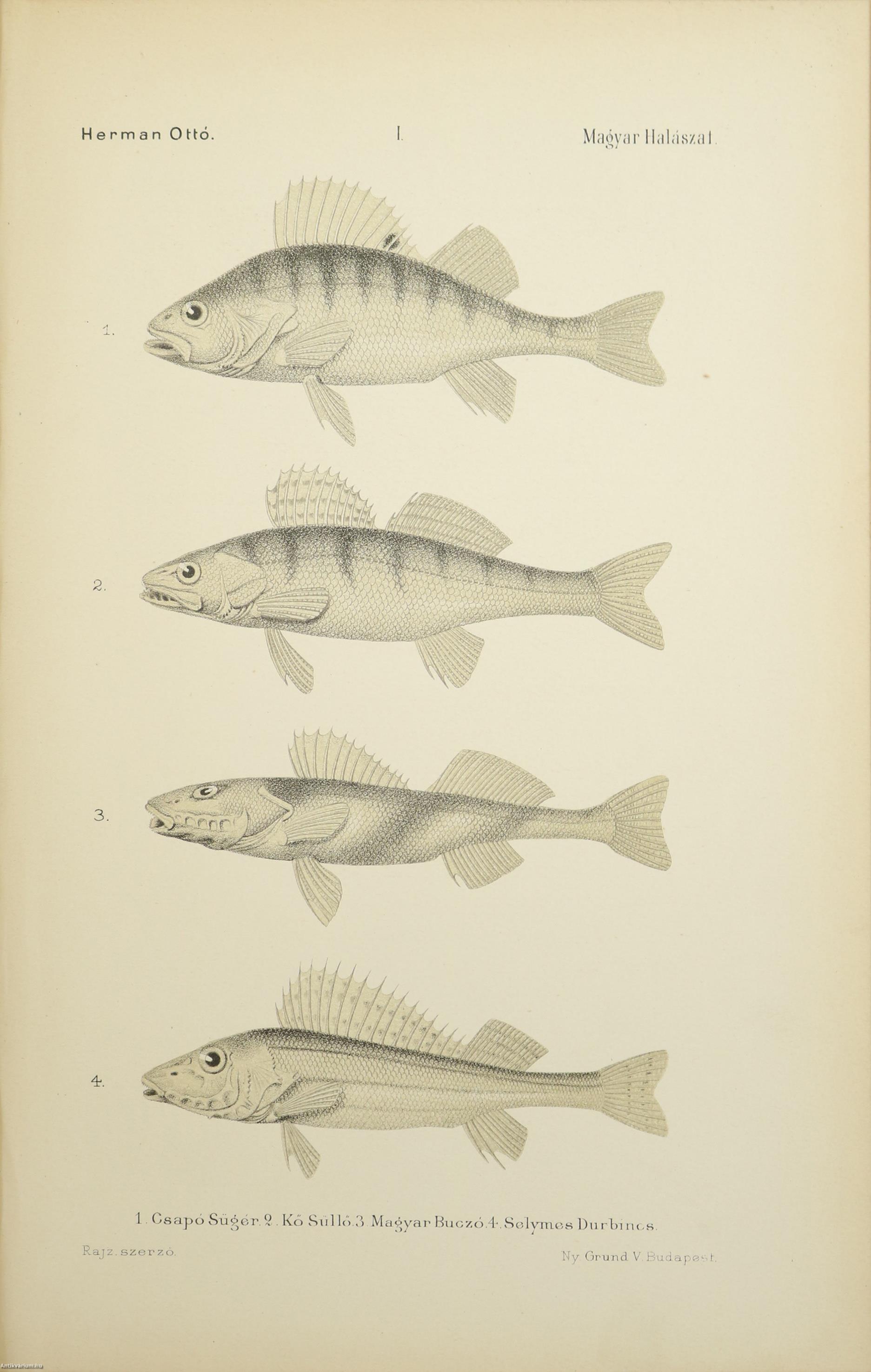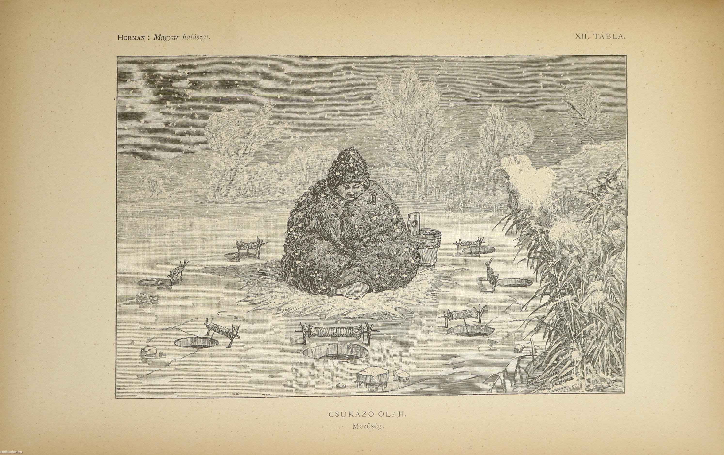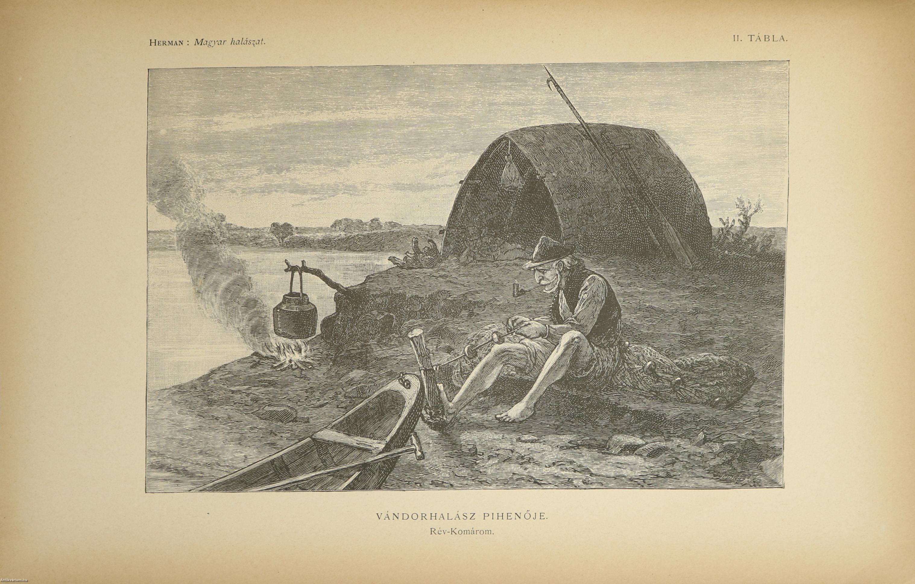A Természettudományi Könyvkiadó-Vállalat könyvsorozatának XXVII. és XXVIII., a könyvkiadó-vállalat aláirói számára az V-ik (1884-1886. évi) cziklus harmadik és negyedik kötetei. Első kiadás. A magyar halászat könyve I-II. (Egységes külön kötetekben.) A Kir. Magyar Természettudományi Társulat megbízásából írta: Herman Ottó. Összesen háromszáz szöveg közti, fekete-fehér, feliratozott ábrával, továbbá az első kötetben 12 fekete-fehér, számozott műlappal, a második kötetben 9 számozott, kőnyomatú táblával illusztrált, a magyar népies halászat mesterszótárával, a Természettudományi Társulat kiadványainak listájával, betűrendes tárgymutatóval, valamint irodalom- és tartalomjegyzékkel kiegészített kiadás. A köteteket a Franklin-Társulat Könyvsajtója nyomtatta, Budapesten. Korabeli félbőr kötésben lévő példány feliratozatlan, mintás címfedéllel és hátlappal, aranyozott feliratozású, sérült könyvgerinccel, mintázott előzéklapokkal, mintázott lapélekkel, hiánytalan állapotban. A kötet szerzője, Herman Ottó (Breznóbánya, 1835. június 26. – Budapest, 1914. december 27.) természetkutató, zoológus, néprajzkutató, régész, politikus. Sokoldalú tudományos tevékenysége nyomán az utolsó magyar polihisztornak és a madarak atyjának is nevezték, ezernél is több tudományos publikáció fűződik a nevéhez. A magyar őskőkorszak-kutatás és a hazai tudományos barlangkutatás egyik elindítója volt. Termékeny természetrajzi írói munkássága mellett mint tudományszervező is jeleskedett. A Természettudományi Füzetek és az Aquila c. madártani folyóirat szerkesztője, a Magyar Ornitológiai Központ alapító-igazgatója, a Magyar Néprajzi Társaság alapítótagja és elnöke, a tudományos ismeretterjesztés műfajának egyik magyarországi megteremtője.