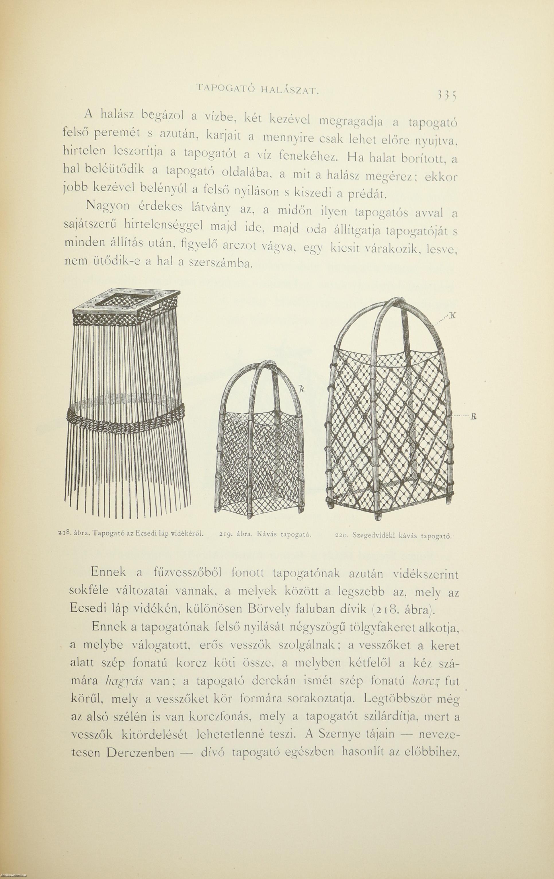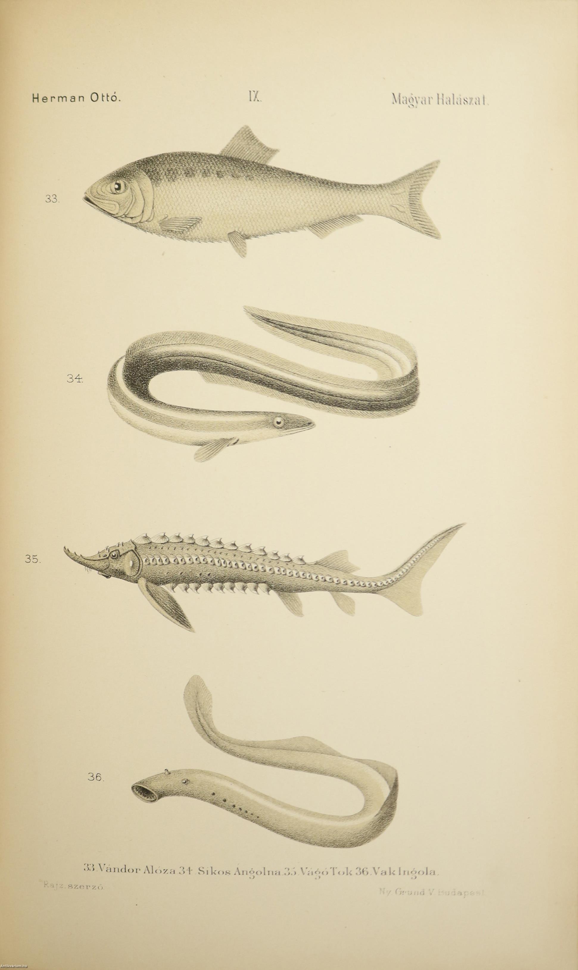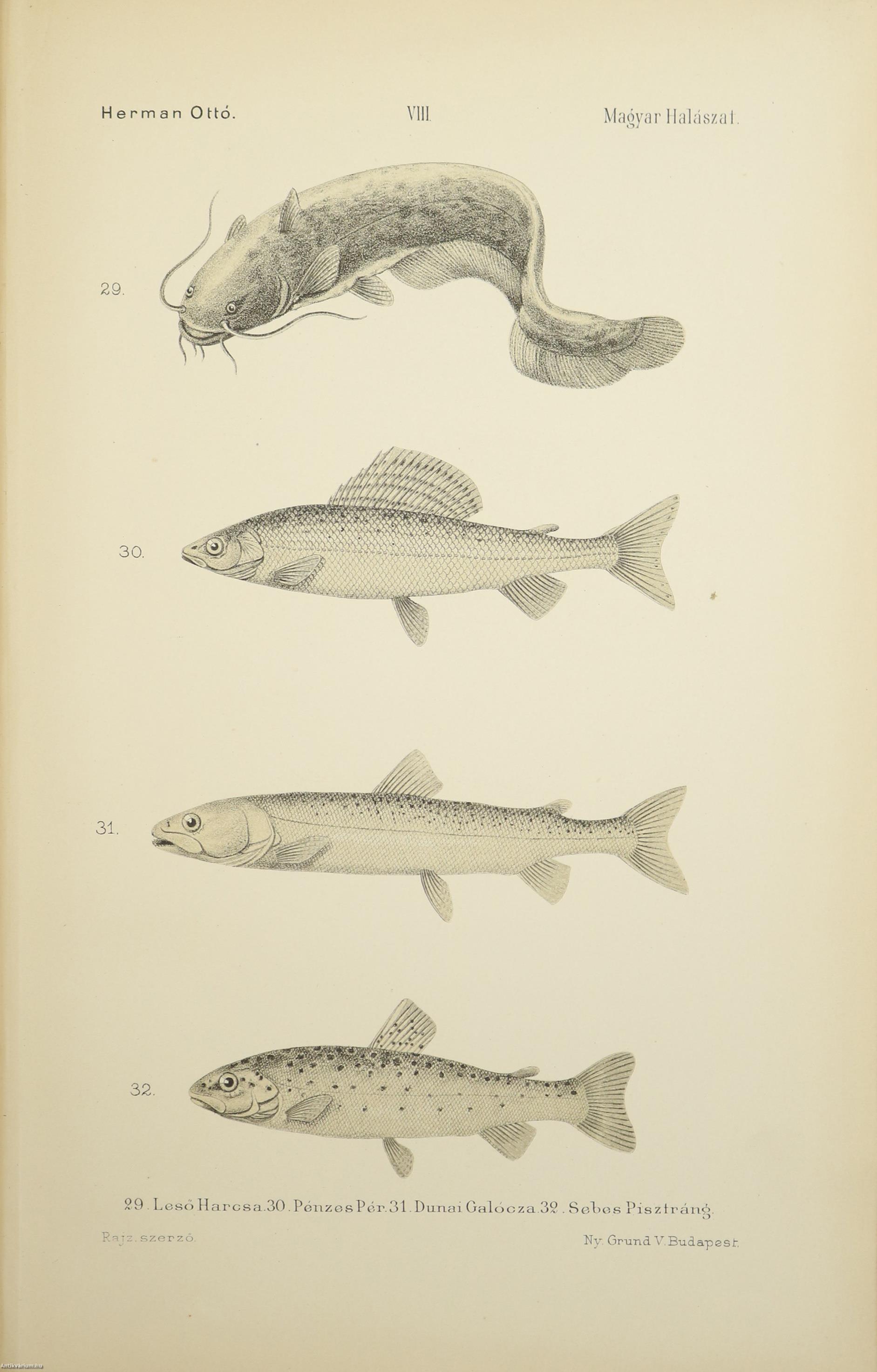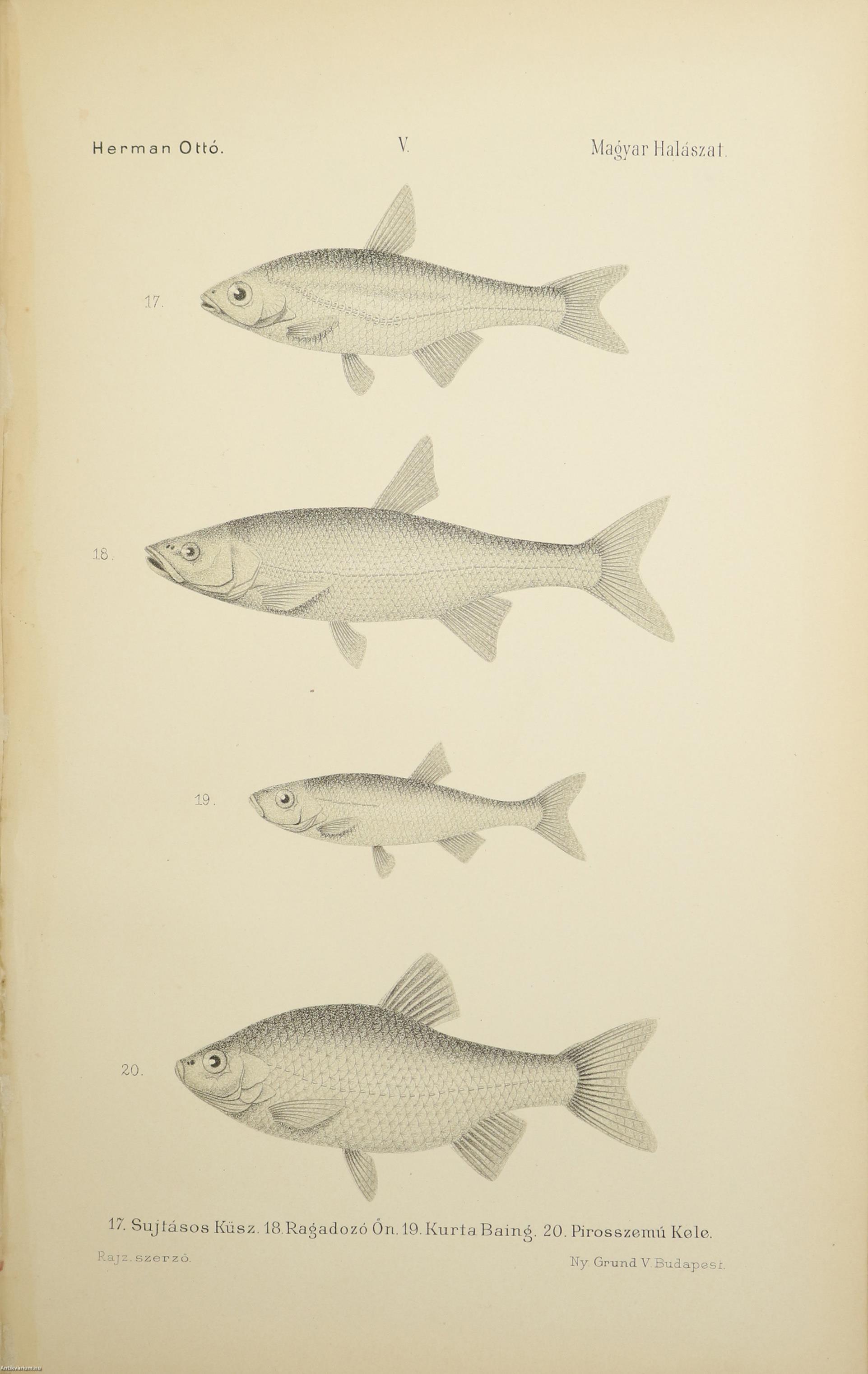 A Természettudományi Könyvkiadó-Vállalat könyvsorozatának XXVII. és XXVIII., a könyvkiadó-vállalat aláirói számára az V-ik (1884-1886. évi) cziklus harmadik és negyedik kötetei. Első kiadás. A magyar halászat könyve I-II. (Egységes külön kötetekben.) A Kir. Magyar Természettudományi Társulat megbízásából írta: Herman Ottó. Összesen háromszáz szöveg közti, fekete-fehér, feliratozott ábrával, továbbá az első kötetben 12 fekete-fehér, számozott műlappal, a második kötetben 9 számozott, kőnyomatú táblával illusztrált, a magyar népies halászat mesterszótárával, a Természettudományi Társulat kiadványainak listájával, betűrendes tárgymutatóval, valamint irodalom- és tartalomjegyzékkel kiegészített kiadás. A köteteket a Franklin-Társulat Könyvsajtója nyomtatta, Budapesten. Korabeli félbőr kötésben lévő példány feliratozatlan, mintás címfedéllel és hátlappal, aranyozott feliratozású, sérült könyvgerinccel, mintázott előzéklapokkal, mintázott lapélekkel, hiánytalan állapotban. A kötet szerzője, Herman Ottó (Breznóbánya, 1835. június 26. – Budapest, 1914. december 27.) természetkutató, zoológus, néprajzkutató, régész, politikus. Sokoldalú tudományos tevékenysége nyomán az utolsó magyar polihisztornak és a madarak atyjának is nevezték, ezernél is több tudományos publikáció fűződik a nevéhez. A magyar őskőkorszak-kutatás és a hazai tudományos barlangkutatás egyik elindítója volt. Termékeny természetrajzi írói munkássága mellett mint tudományszervező is jeleskedett. A Természettudományi Füzetek és az Aquila c. madártani folyóirat szerkesztője, a Magyar Ornitológiai Központ alapító-igazgatója, a Magyar Néprajzi Társaság alapítótagja és elnöke, a tudományos ismeretterjesztés műfajának egyik magyarországi megteremtője.