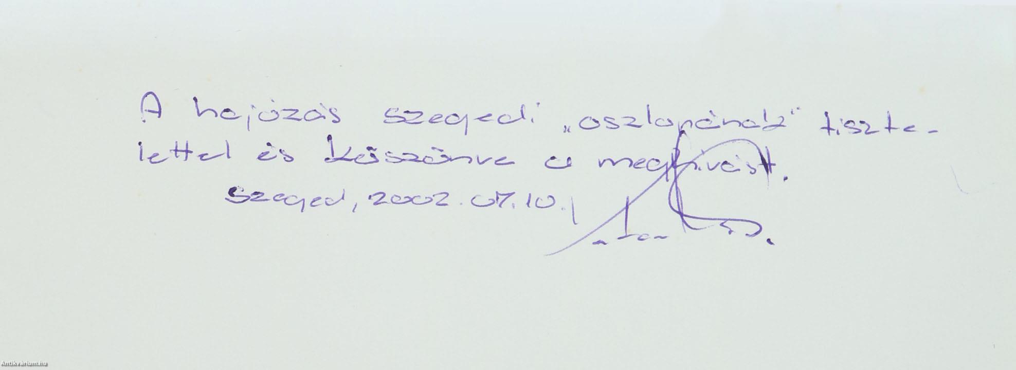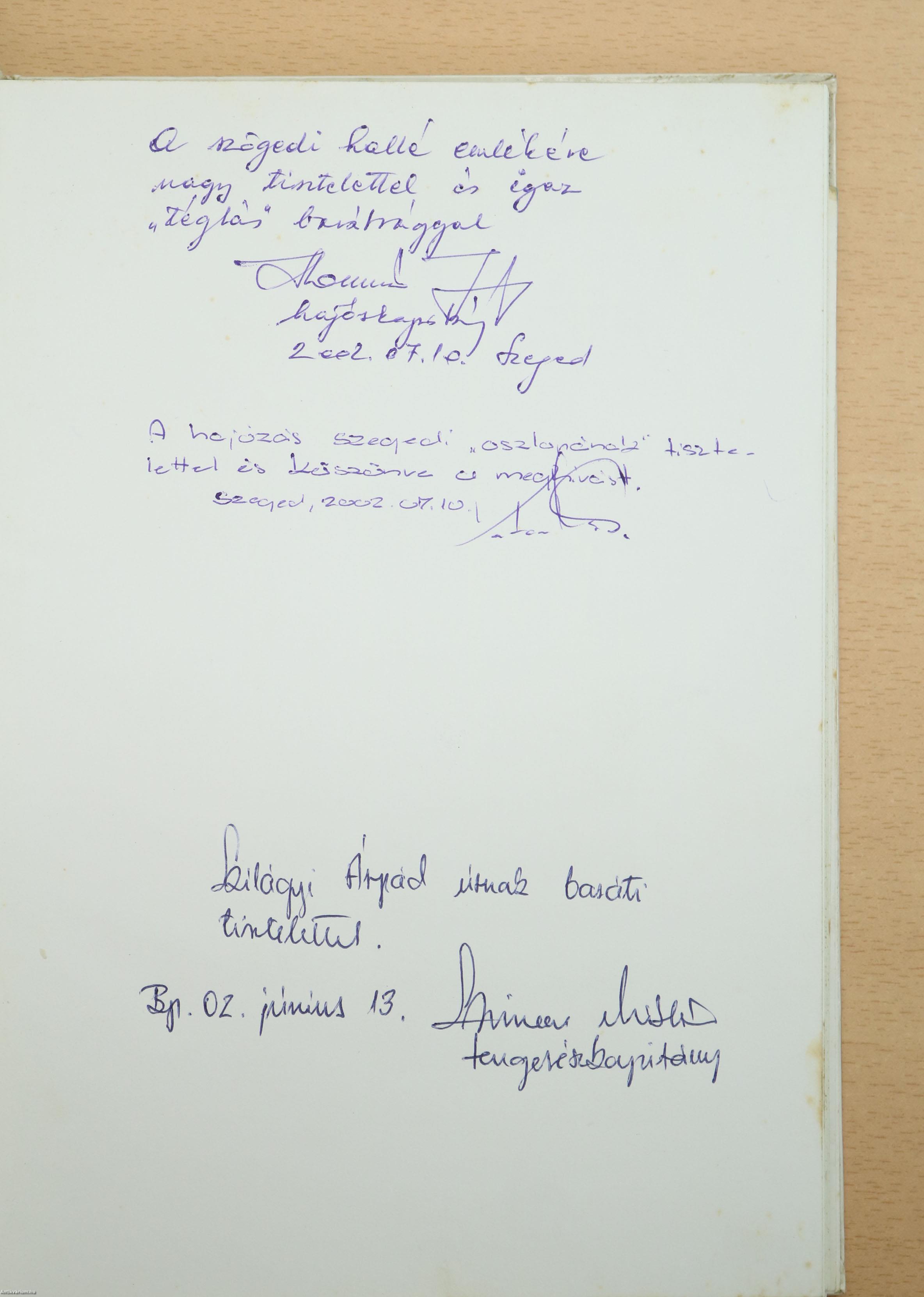 - "A hajózás szegedi "oszlopának" tisztelettel és köszönve a meghívást. Szeged, 2002. 07. 10. Katona Miklós."