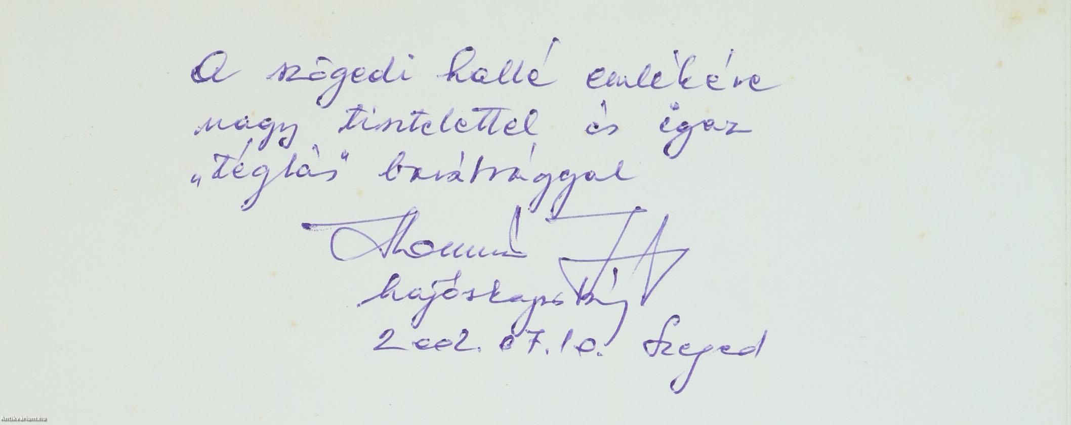 - "A szögedi hallé emlékére nagy tisztelettel és igaz "téglás" barátsággal Horváth József hajóskapitány 2002. 07. 10. Szeged"