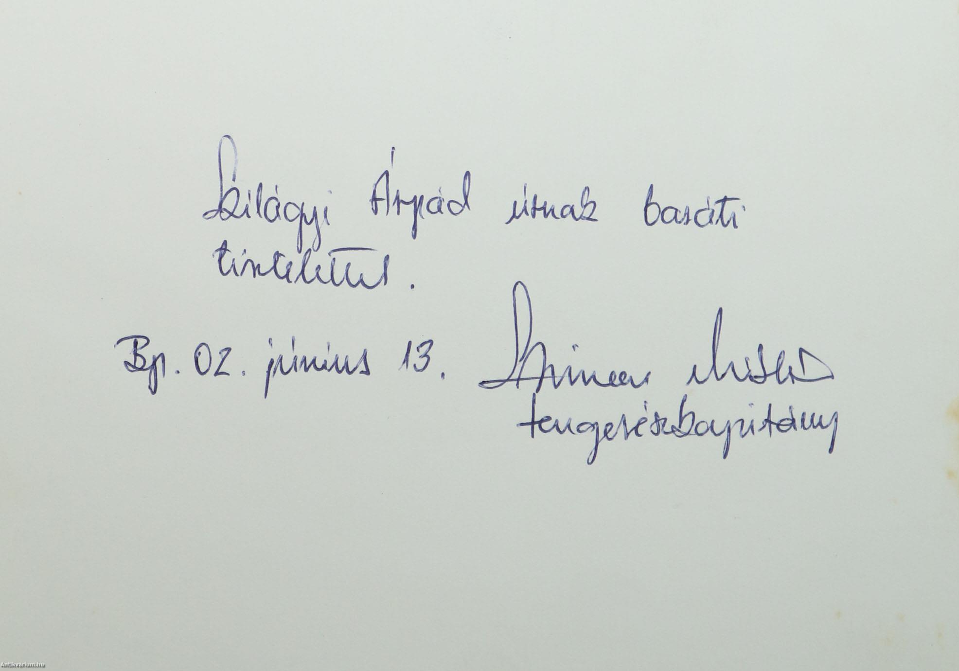 - "Sz. Á. úrnak baráti tisztelettel. Bp. 02. június 13. Szimon Miklós tengerészkapitány"