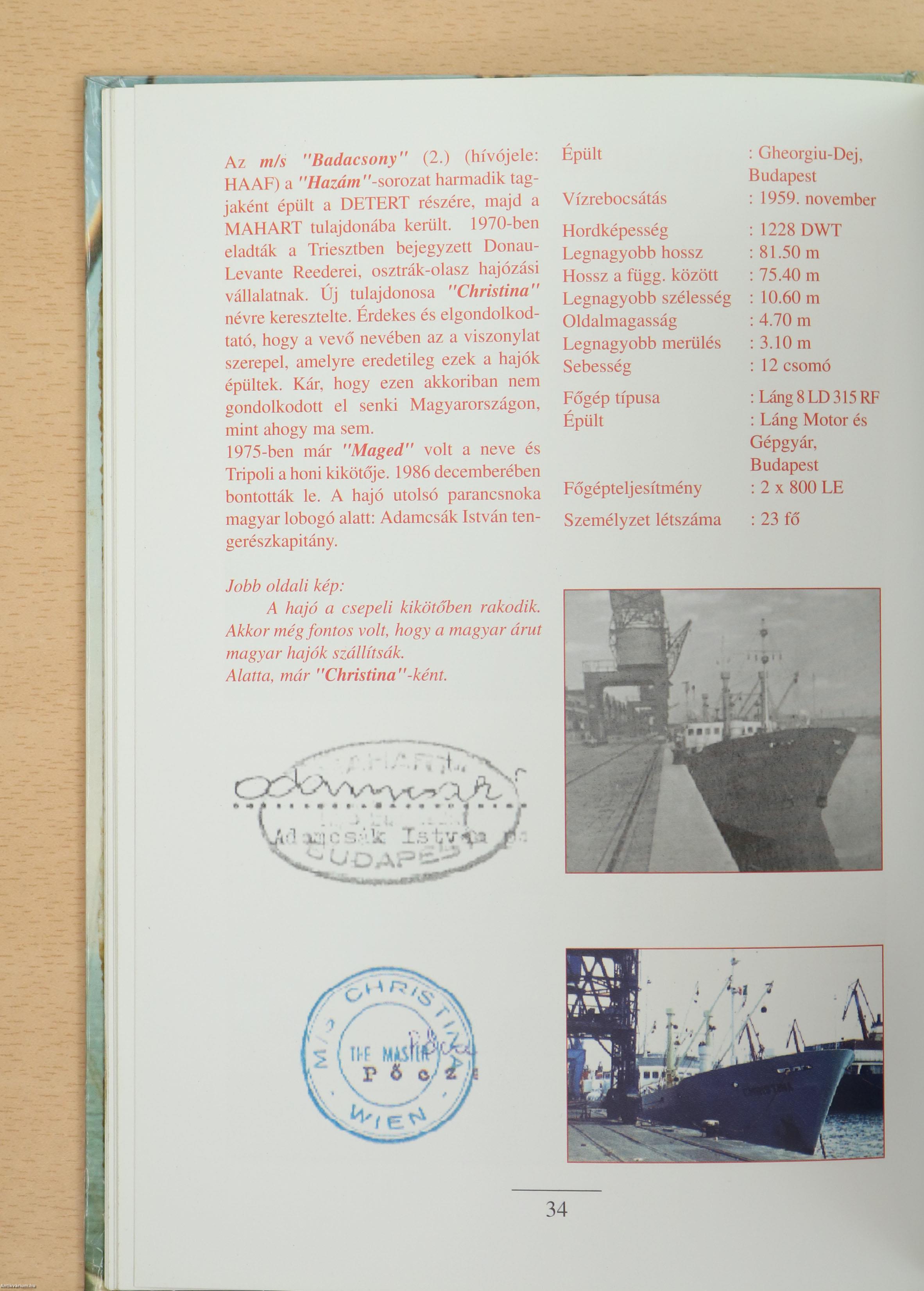 A köszöntő szavak papírra vetésekor a honfiúi és szakmai büszkeség, a nosztalgikus merengés mellett a jövőbe vetett hit, szilárd meggyőződés is vezette tollamat. Honfiúi és szakmai büszkeség, hiszen egy tengerparttal nem rendelkező ország mutatta meg a világnak rátermettségét a tengerhajózás magas szakmai színvonalú művelésében és mert az albumban szereplő hajók többségén a magyar trikolór mellett a MAHART társasági lobogót is lengette a szél. A nosztalgikus gondolatokat a magyar nemzeti hajózás utolsó egységének 2000. október 16-án történt lobogóbevonása adja, hiszen ezzel egy időre megszűnt a közel hat évtizedig eredményesen működő nemzeti tengerhajózásunk.