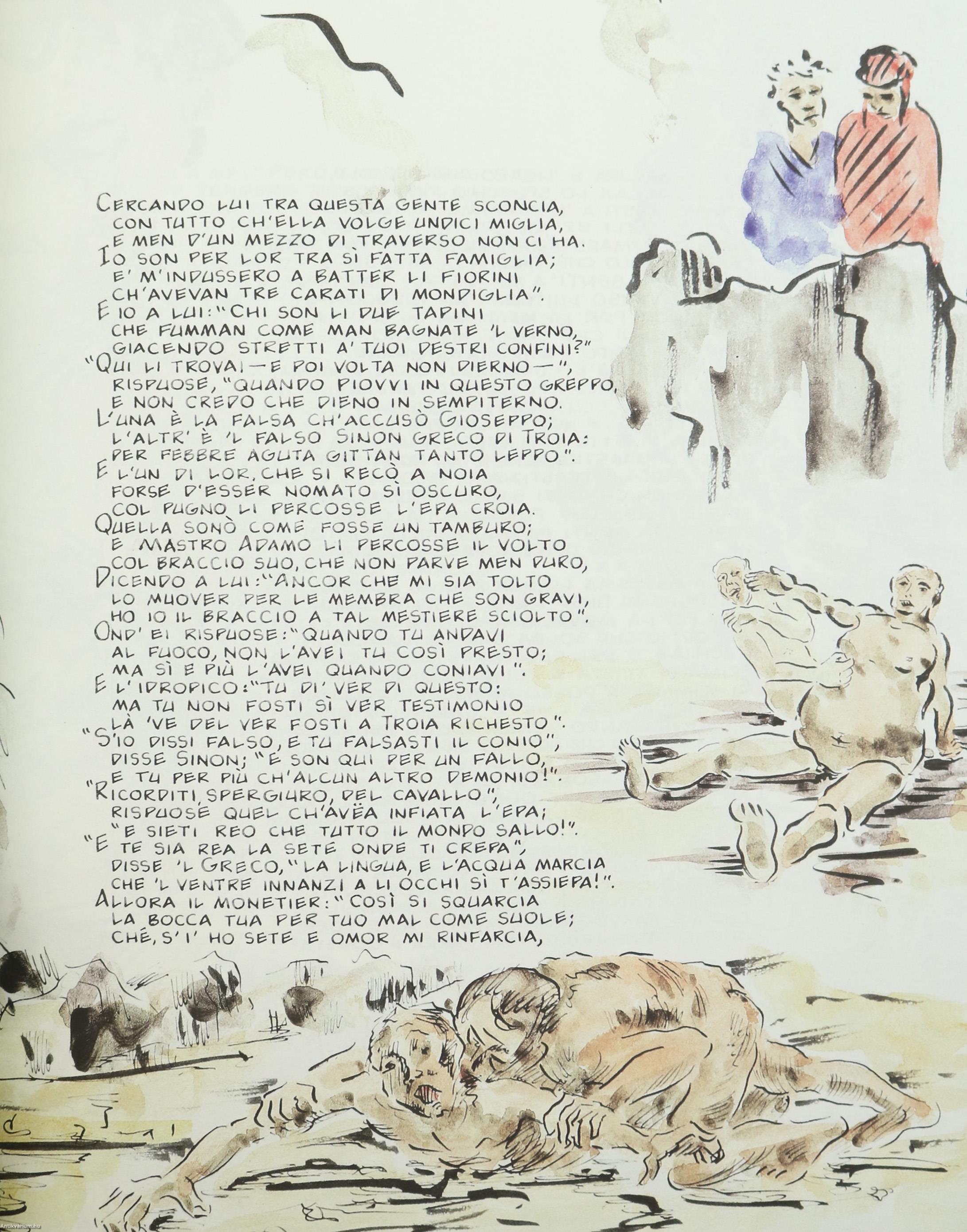 Jelen, George Cochrane grafikus által kézzel írt és rajzolt kötet Dante születésének 700. évfordulója alkalmából készült, 700 olasz és 700 angol nyelvű példányban. Ez a 118. számú példány.