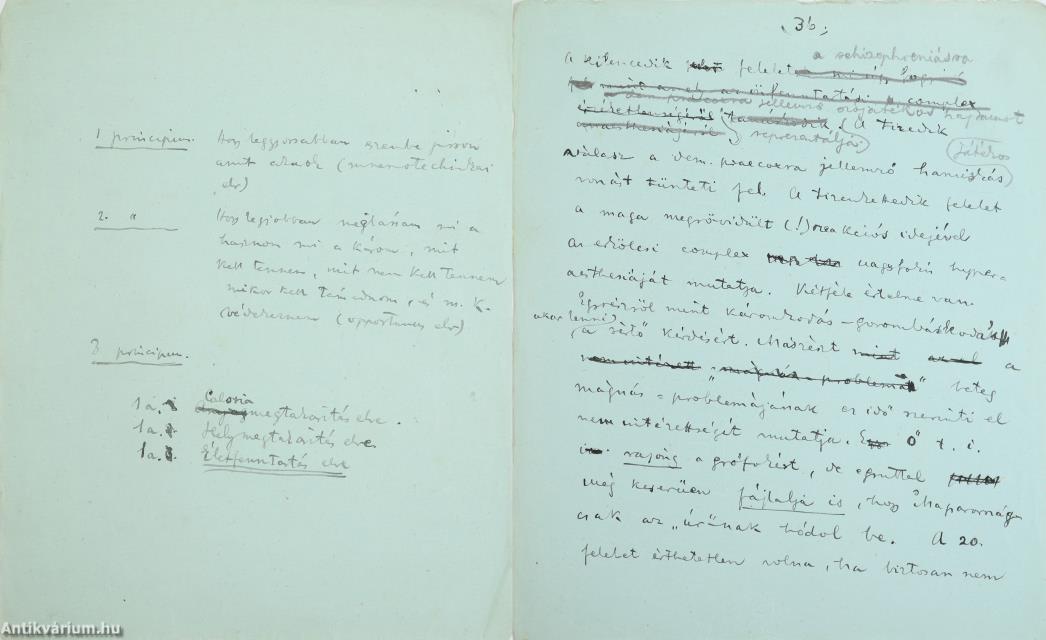 A dokumentum két fő részből áll: az általános „principiumok” megfogalmazásából, amelyek az emberi gondolkodás célszerűségét és takarékossági elveit írják le, valamint a konkrét betegválaszok részletes pszichiátriai elemzéséből. Csáth a válaszokat nem csupán tünetként, hanem komplex lelki folyamatként vizsgálja, figyelembe véve a pszichés, erkölcsi és társadalmi összefüggéseket is. A jegyzetből jól látszik klinikai módszere: a finom megfigyelés és az elemző, rendszerező szemlélet kombinációja. Ez a dokumentum közvetlen betekintést enged Csáth orvosi gondolkodásába, és egyértelműen mutatja, hogyan kapcsolódik a pszichiátriai tapasztalat az irodalmi érzékenységéhez. Összességében a kézirat bizonyítja, hogy számára a beteg megfigyelése nem mechanikus rögzítés, hanem az emberi elme összetett működésének értelmezése. A dokumentum emellett értékes forrás a korabeli pszichiátriai gyakorlat történetéhez is, bemutatva, hogyan alkalmazták a mentális zavarok elemzésében a pszichológiai alapelveket.