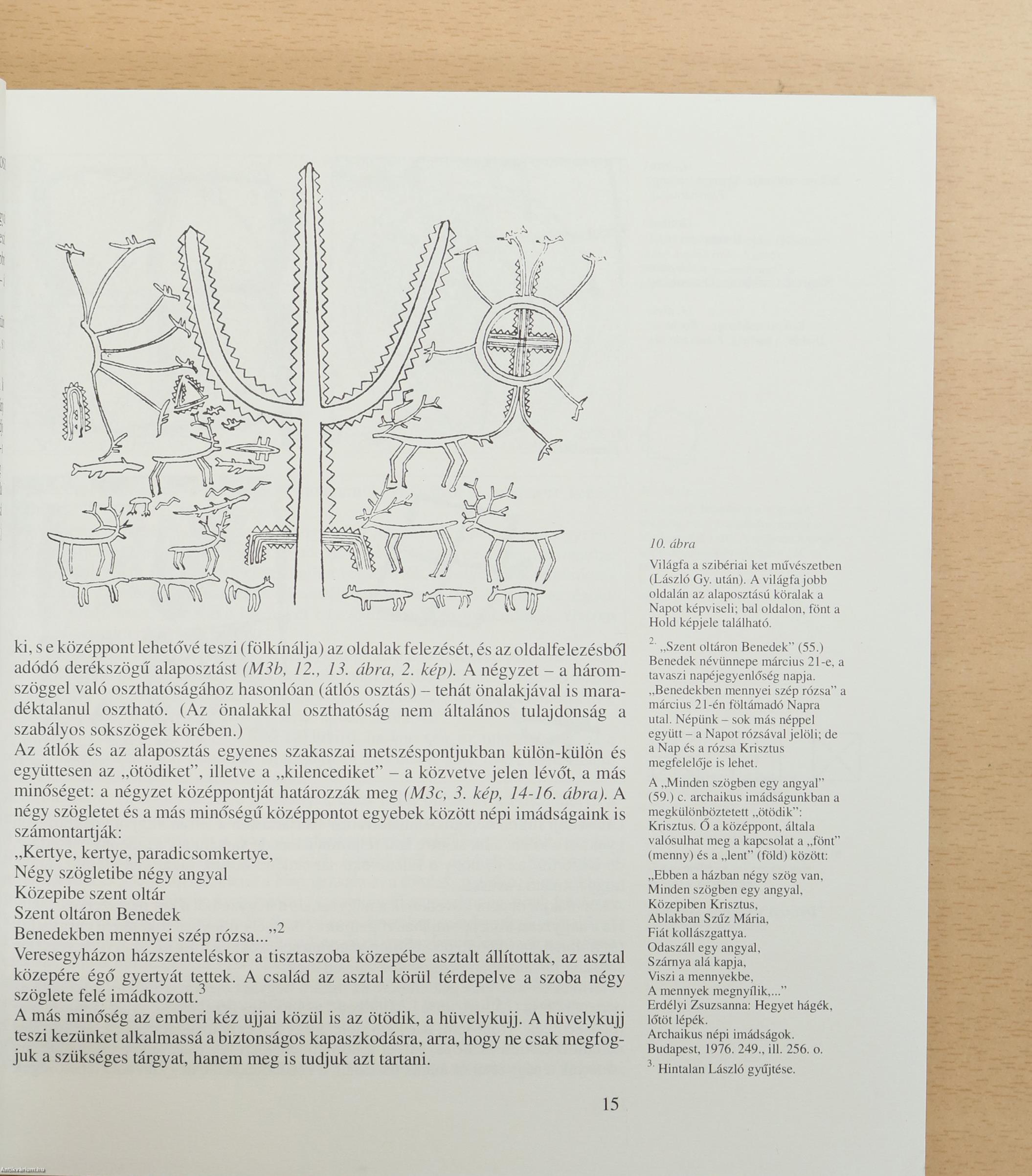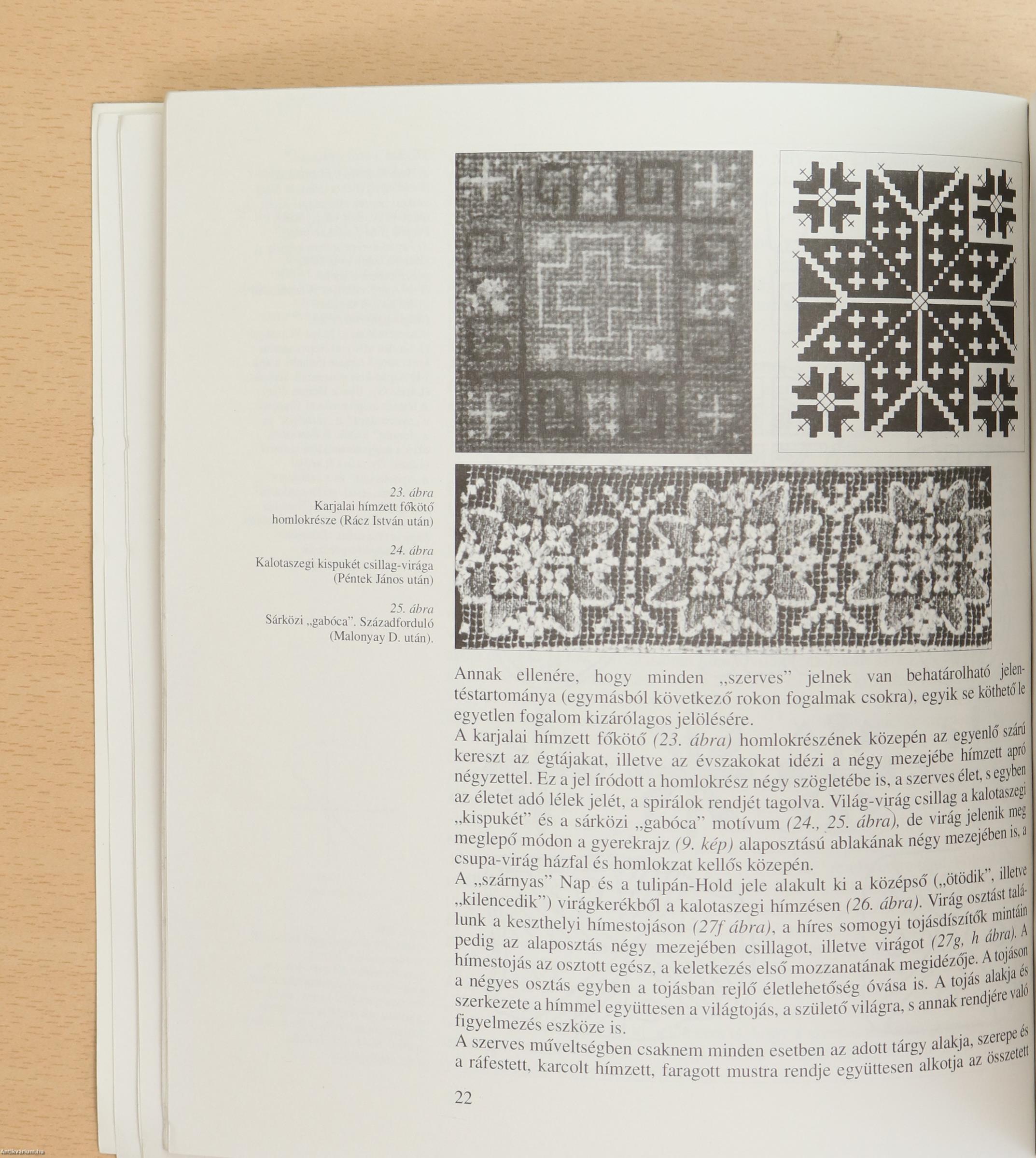 Ezek az alakzatok meghatározó sorrendben egymásból következnek, belőlük és általuk szerveződik számos fontos tagoltabb alakzat (pl. forgórózsa, életfa, kentaur, az analógiásan Összetett állat- és növényalakzatok). Mindezek pedig szerte a világon elterjedtek. Földrajzilag egymástól távol eső népek művészetében bukkannak föl és gazdasági, társadalmi, szellemi változások ellenére évezredeken át fönnmaradtak. E fölismerések után keresni kezdtem - és meg is találtam a rendező elvet, egy olyan „logikai modell'-t, amely az egymástól térben és időben távol keletkezett motívumok rendszerét, rokonságát és általános jelentés-tartalmát igazolja. A logikai modell szervezése és alkalmazása döbbentett rá a négyzet őskori „megtalálásának" jelentőségére; de a modell tette lehetővé számomra - egyebek között azt is, hogy a természetben élő ember miért rajzol, farag, sző vagy hímez lépcsőt vagy hármas levelet a spirál mellé; hogy a lépcső alak miért alkalmas a „kezdődik" és a „bevégzett" jelölésére, hogy nemcsak a lépcsőnek,, hanem valamennyi „megtalált" elemi alaknak és tagoltabb alakzatnak egyetemes jelentéstartalma van, s e jelek (képletek, motívumok) rendszert alkotnak.