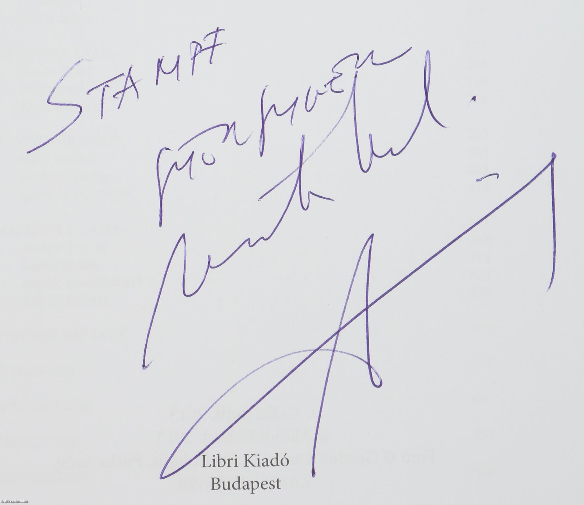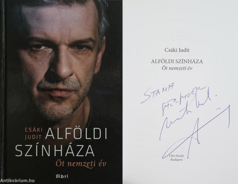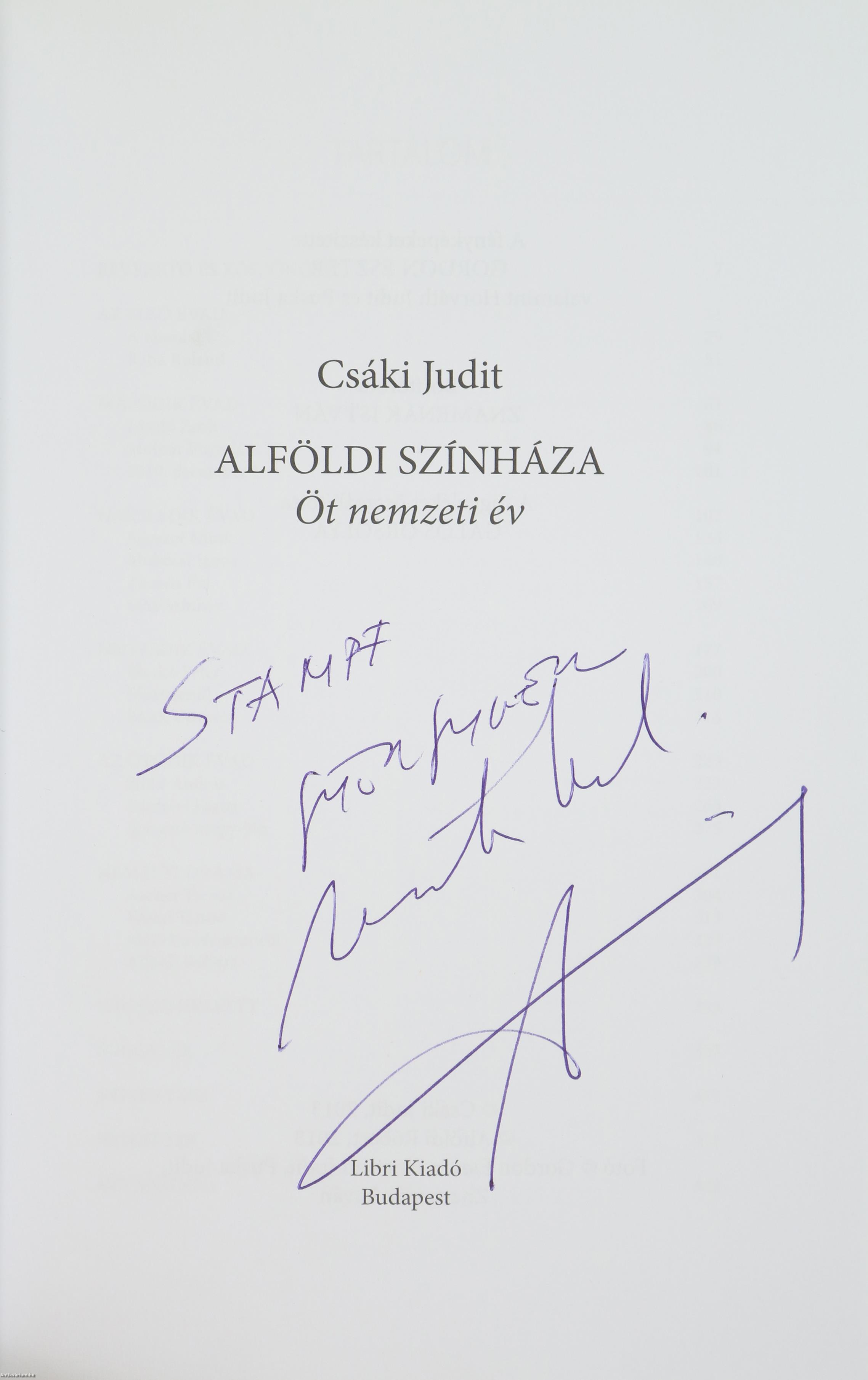 A címlapon Alföldi Róbert Jászai Mari-díjas magyar színész, rendező tollal beírt dedikációja olvasható: "S. Gy.-nek szeretettel Alföldi Róbert".