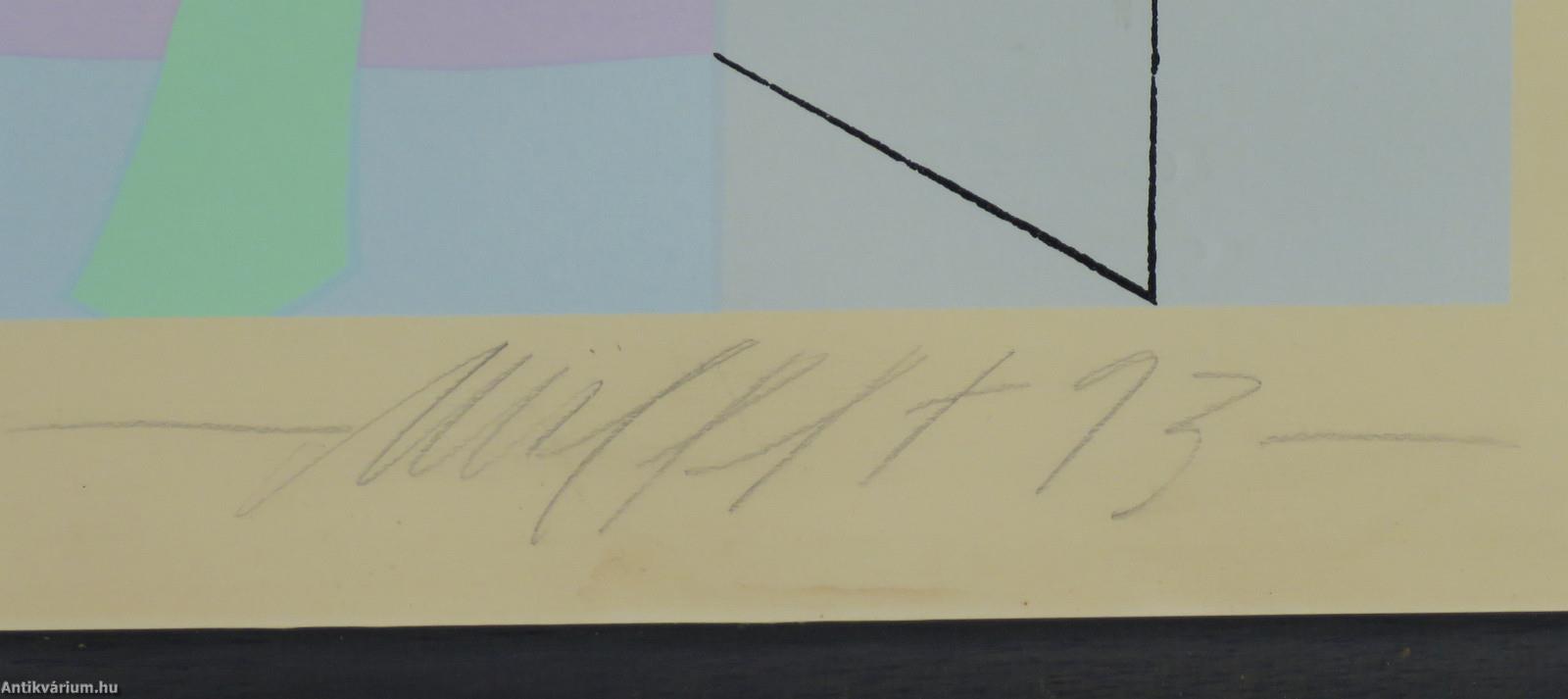 Jelzés balra lent: O (ceruzával), középen lent: 65/100 (ceruzával), jobbra lent: Müller 93 (ceruzával), színes szitanyomat, papír.