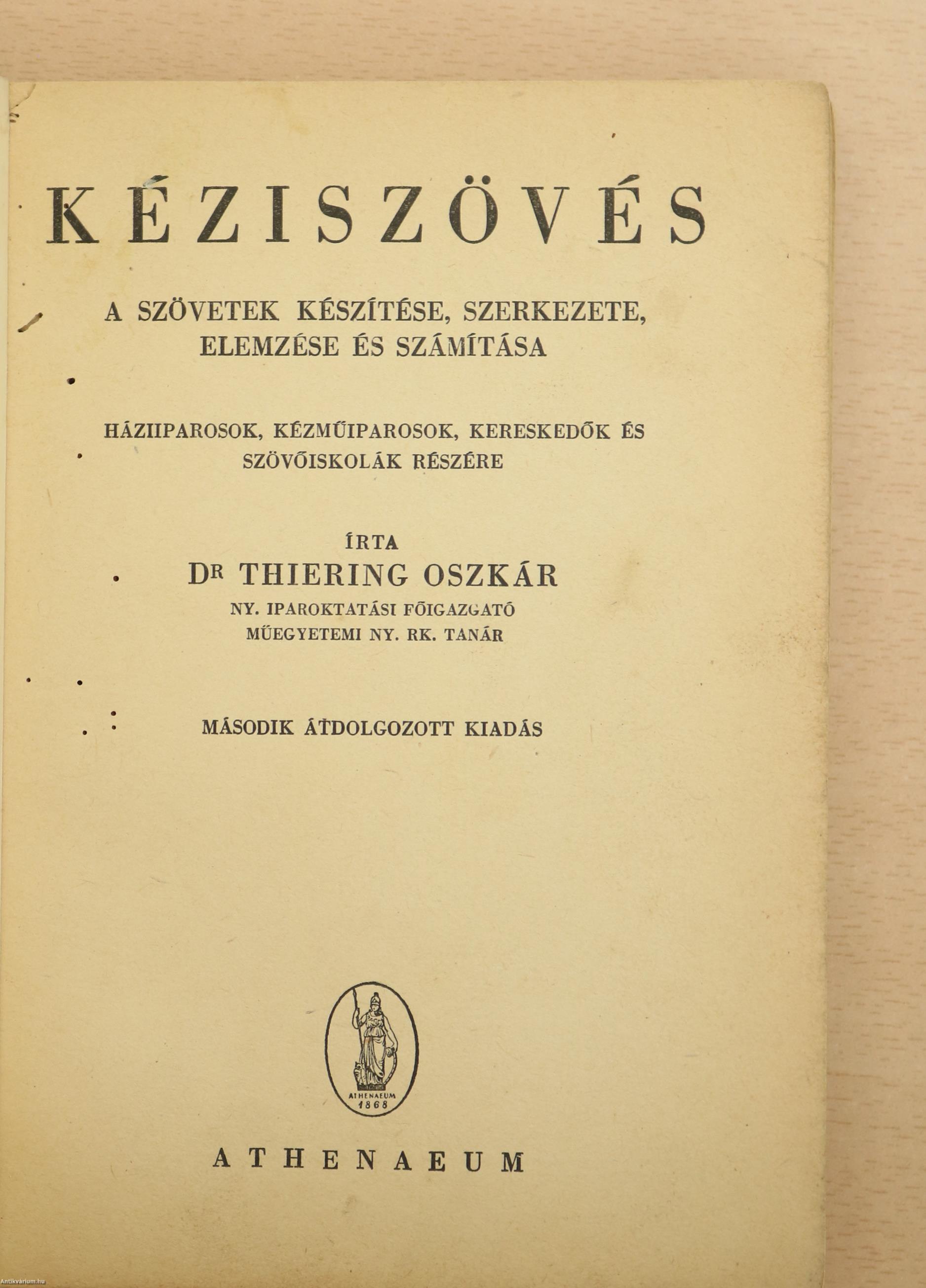 Thiering Oszkár, Dr.: Kéziszövés