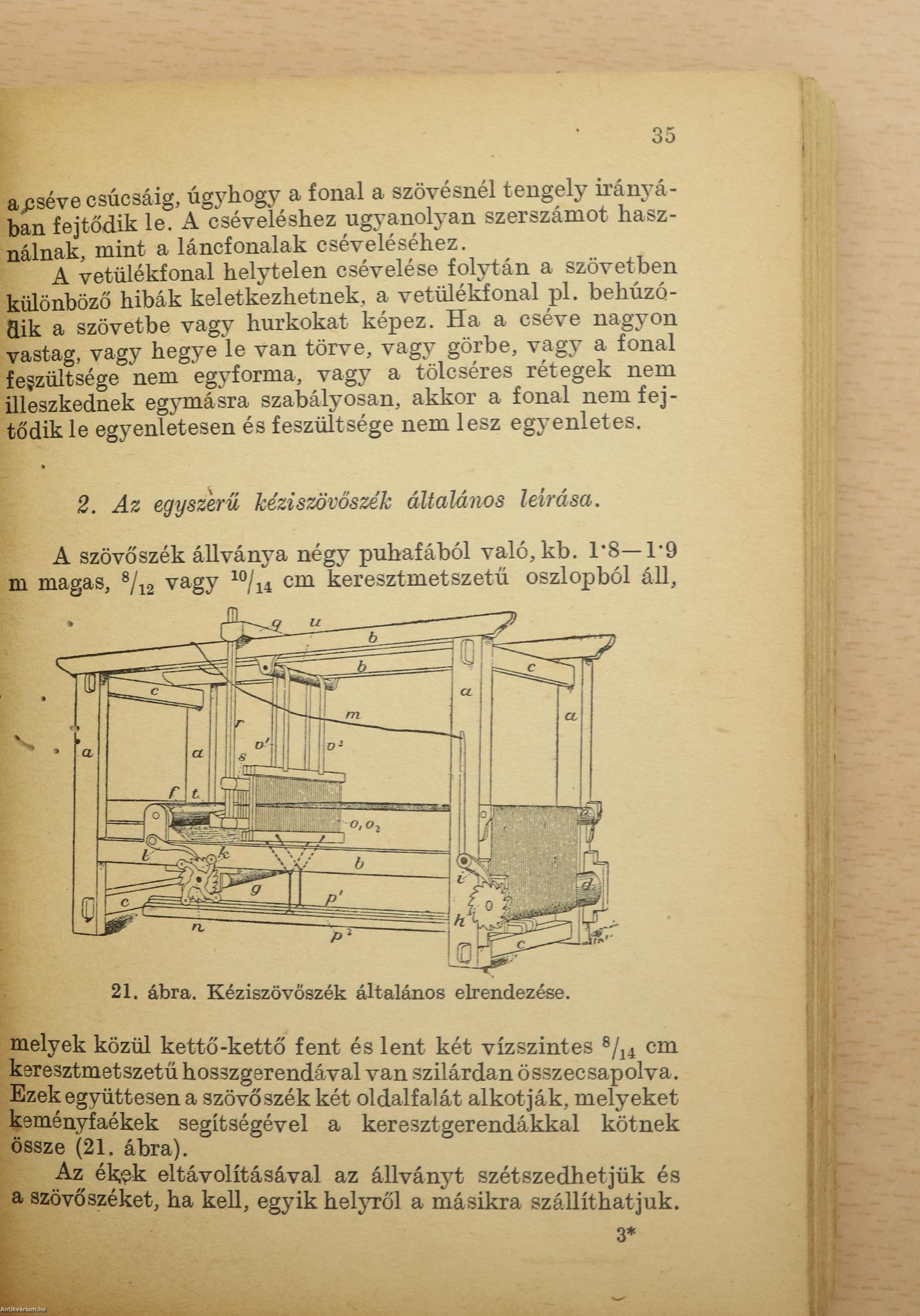 | 2. A kézi szövőszék leírása és egyes részei | 35 |