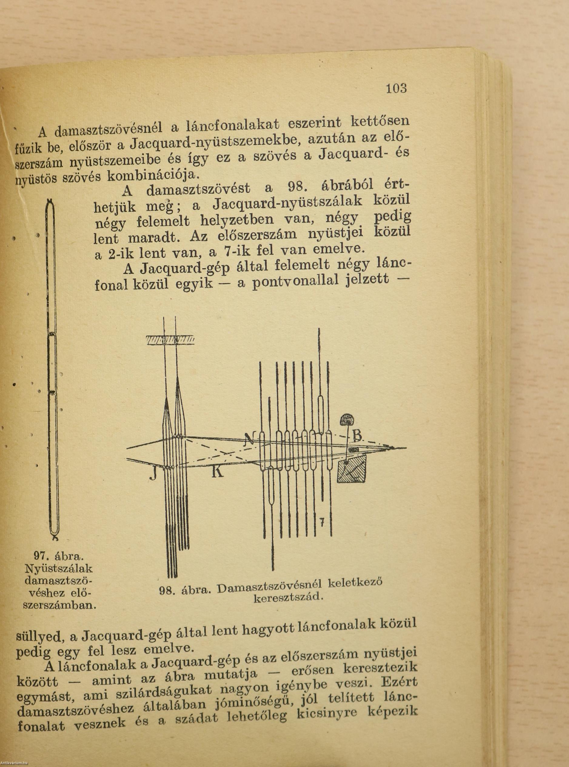 E határokon belül azonban lehetőleg részletesen ismertettem az egyszerű kézi szövőszékek, a Jacquard- és damasztszövőszékek működését és összes részeit, a szövetek szerkezetét, elemzését, vizsgálatát és számításait, különös tekintettel arra, hogy az olvasó a leírt szerkezeteket, azoknak helyes vagy helytelen működését, a szövési üzemnél előforduló hibákat és azok elkerülését teljesen megértse és megismerje.