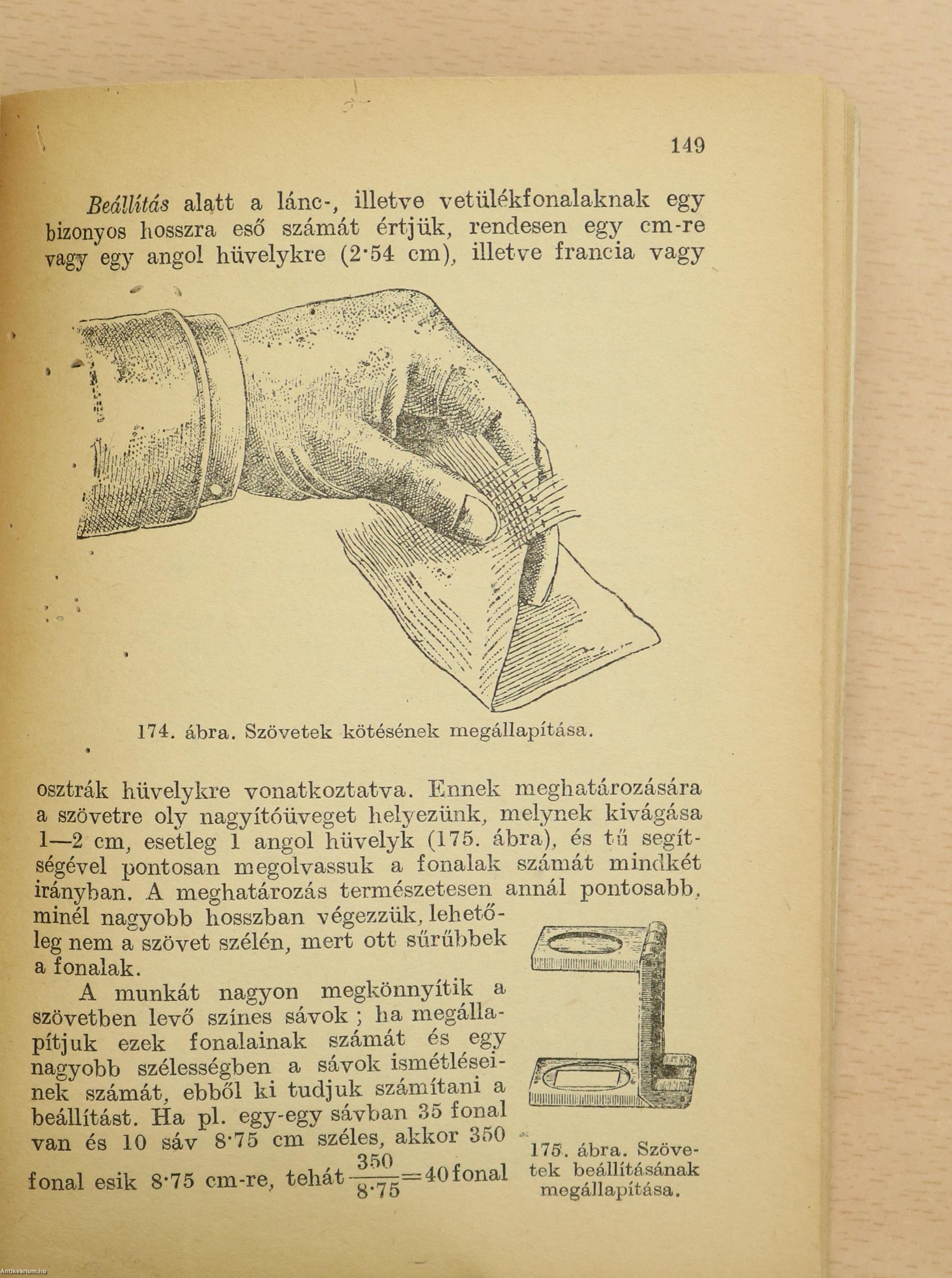 A szövetszámításnál közölt adatok a mai, folyton változó árviszonyok mellett csak általános tájékozásul szolgálnak.