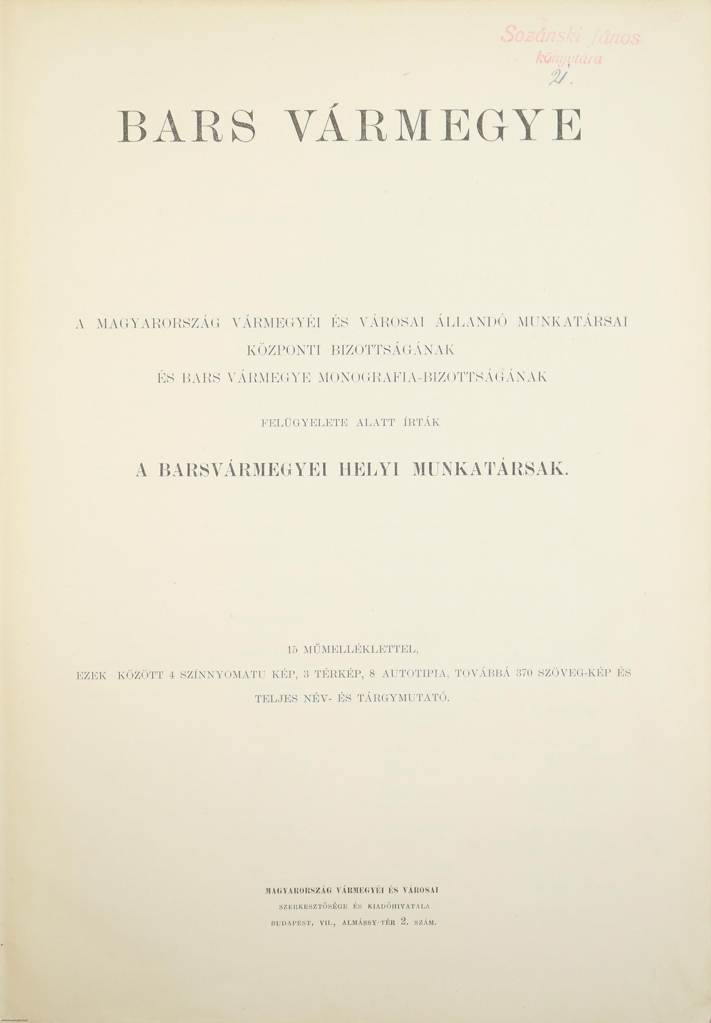 Bars vármegye községei. írták többen 13-85
