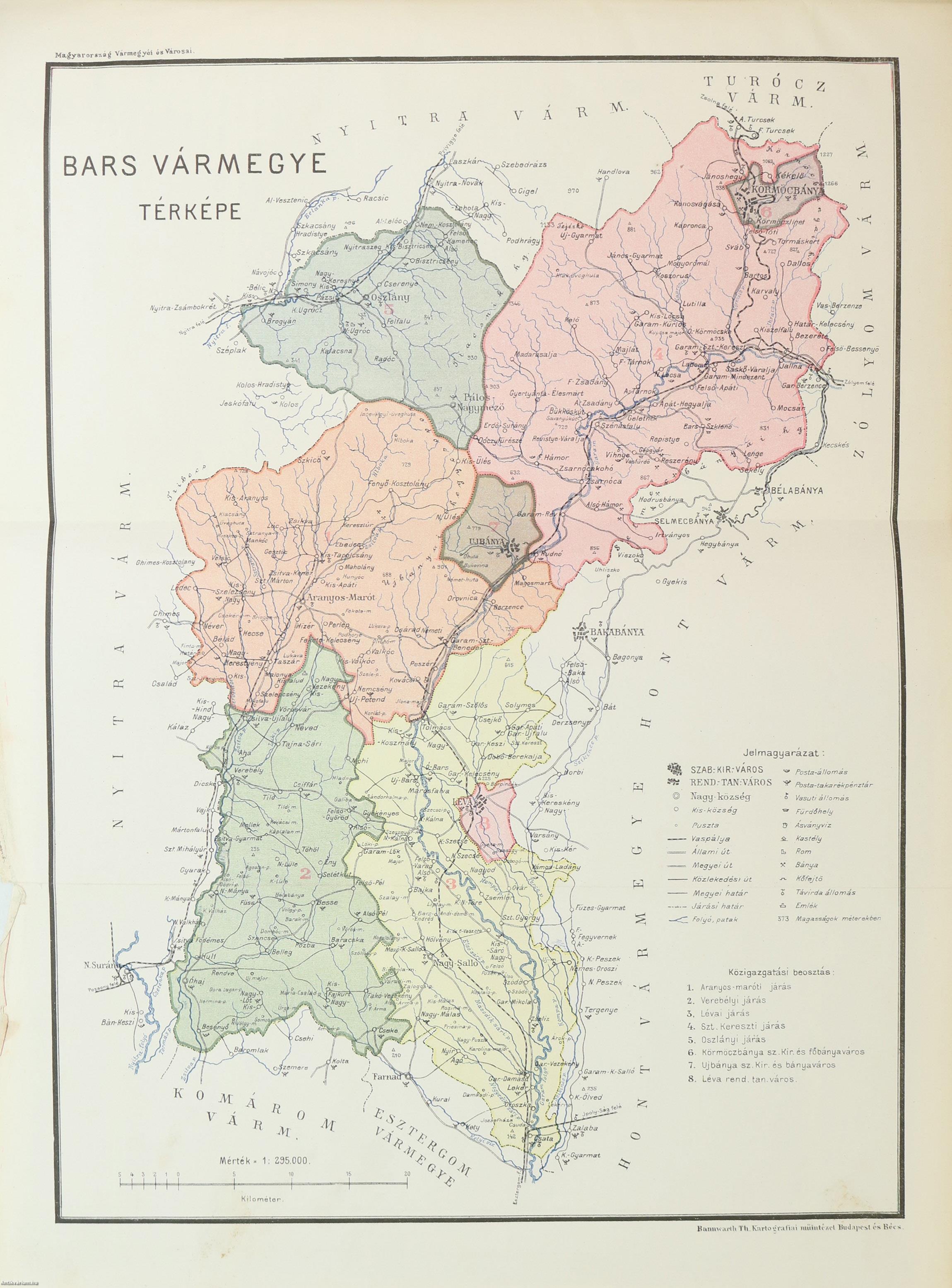 Bars vármegye térképe. Rajzolta Banwarth Th. (Előkép).