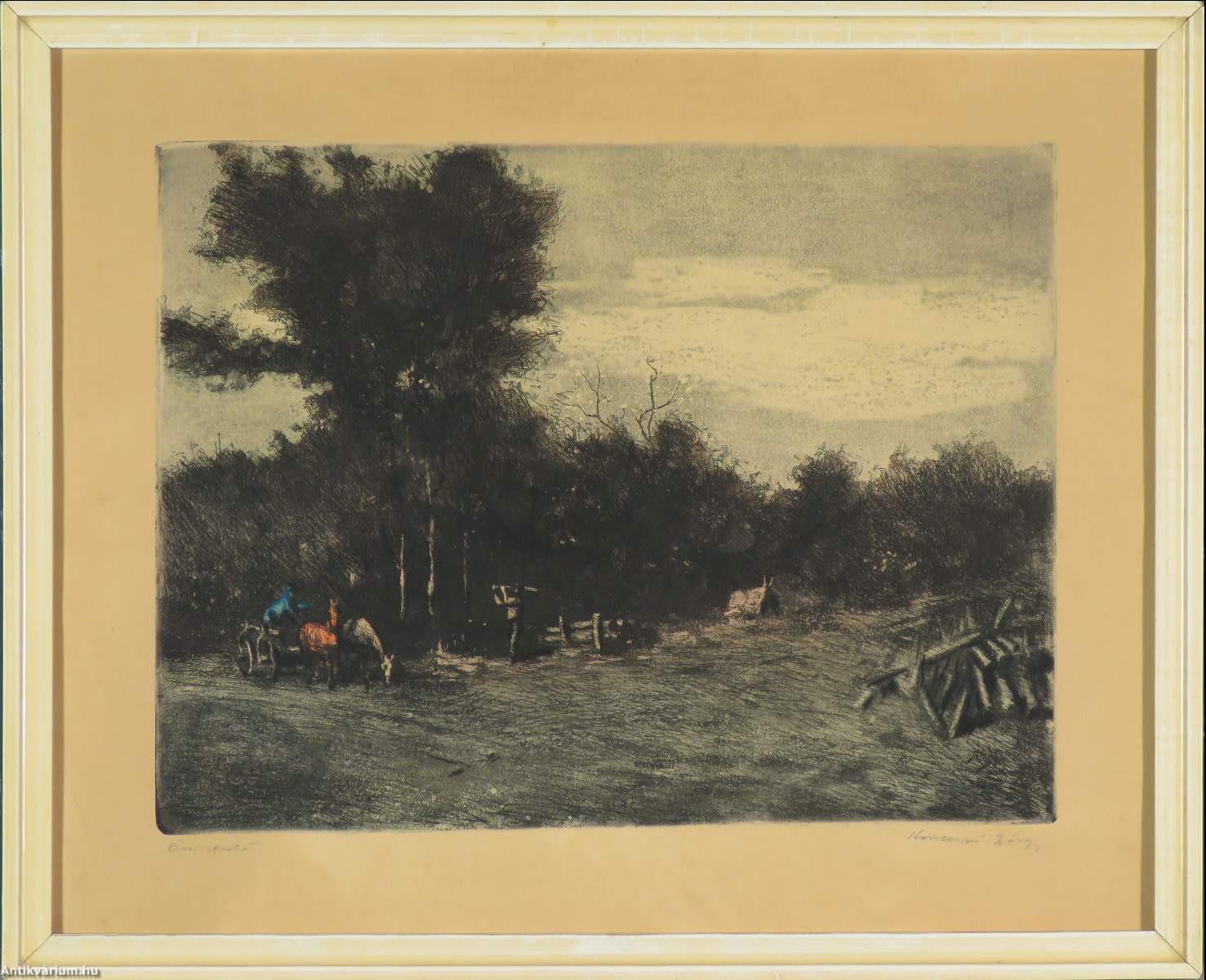 Konecsni György (1908-1970): "Őszi erdő" - rézkarc, akvatinta, papír 29,5 cm x 39 cm