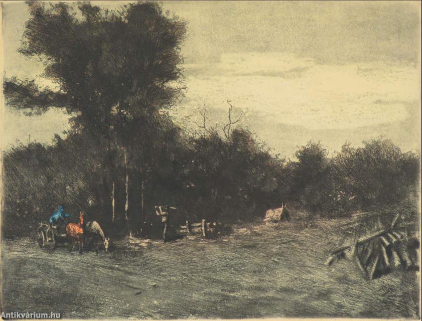 Jelzés balra lent: Őszi erdő (ceruzával), jobbra lent: Konecsni György (ceruzával), rézkarc színes aquatintával, papír.