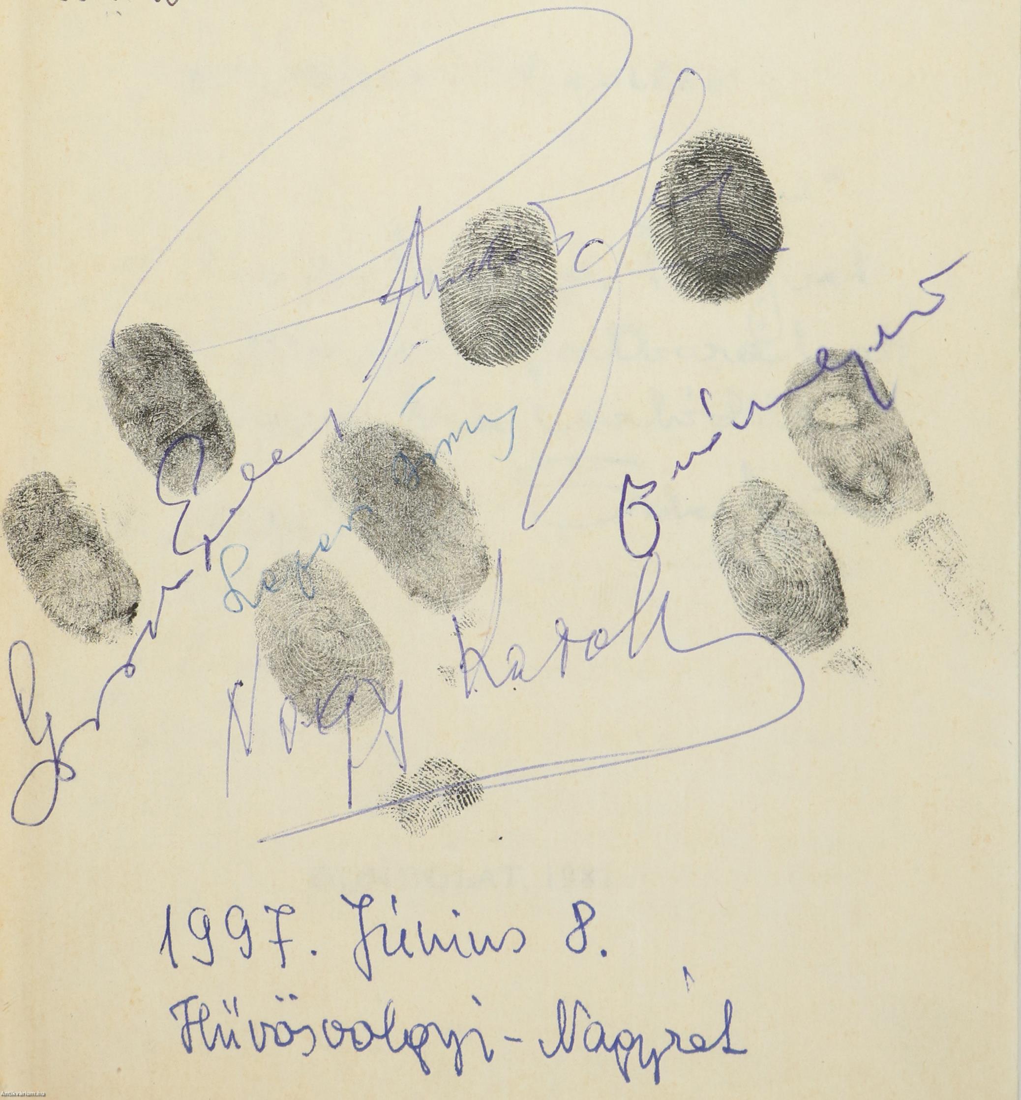 Sebes Gusztáv: Örömök és csalódások (Sebes Gusztáv által dedikált, valamint Puskás Ferenc, Buzánszky Jenő, Grosics Gyula, és Szepesi György különleges ujjlenyomatos aláírása és Nagy Károly aláírását tartalmazó példány)