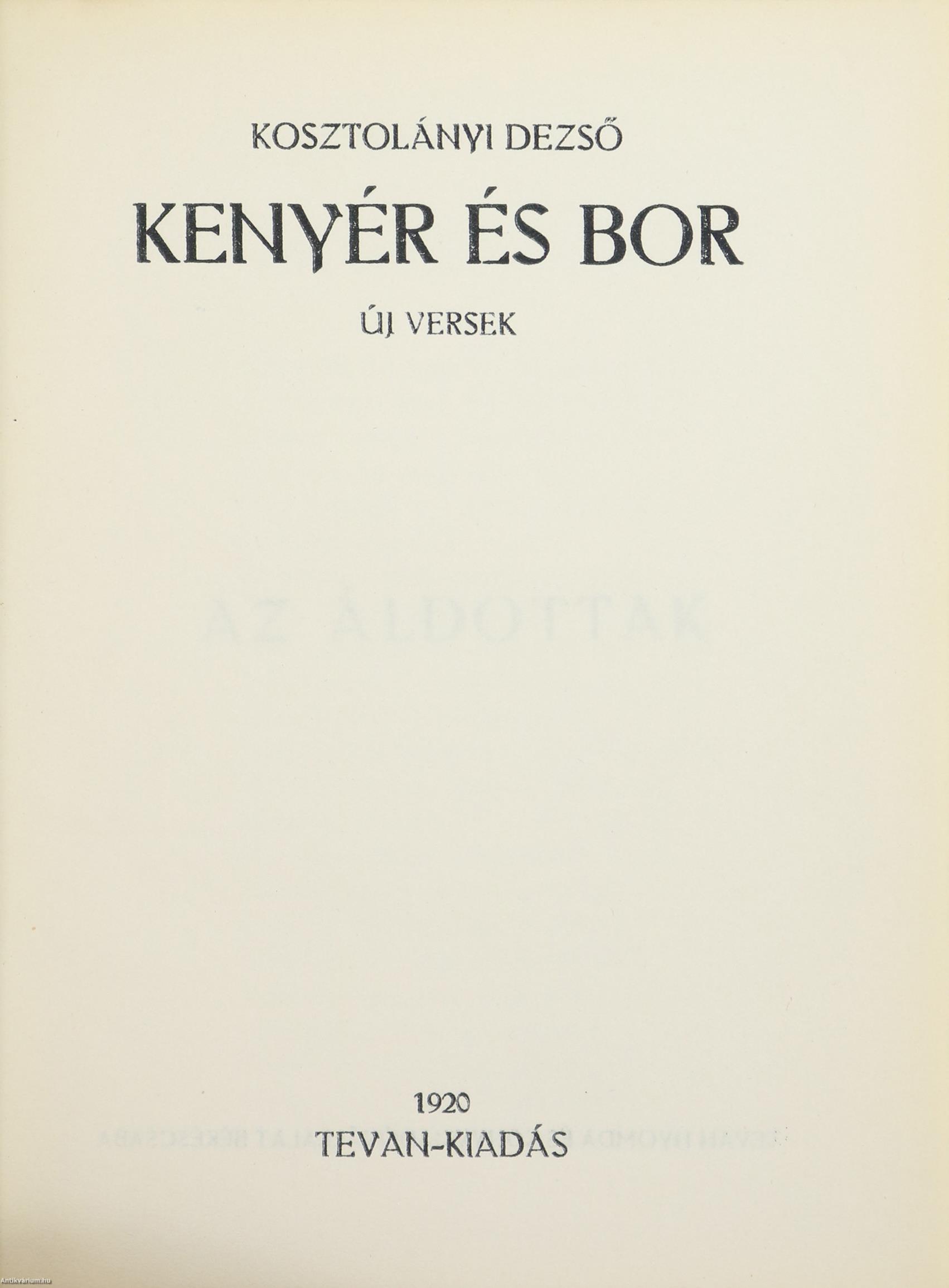 Kosztolányi Dezső: Kenyér és bor (aláírt, számozott példány)
