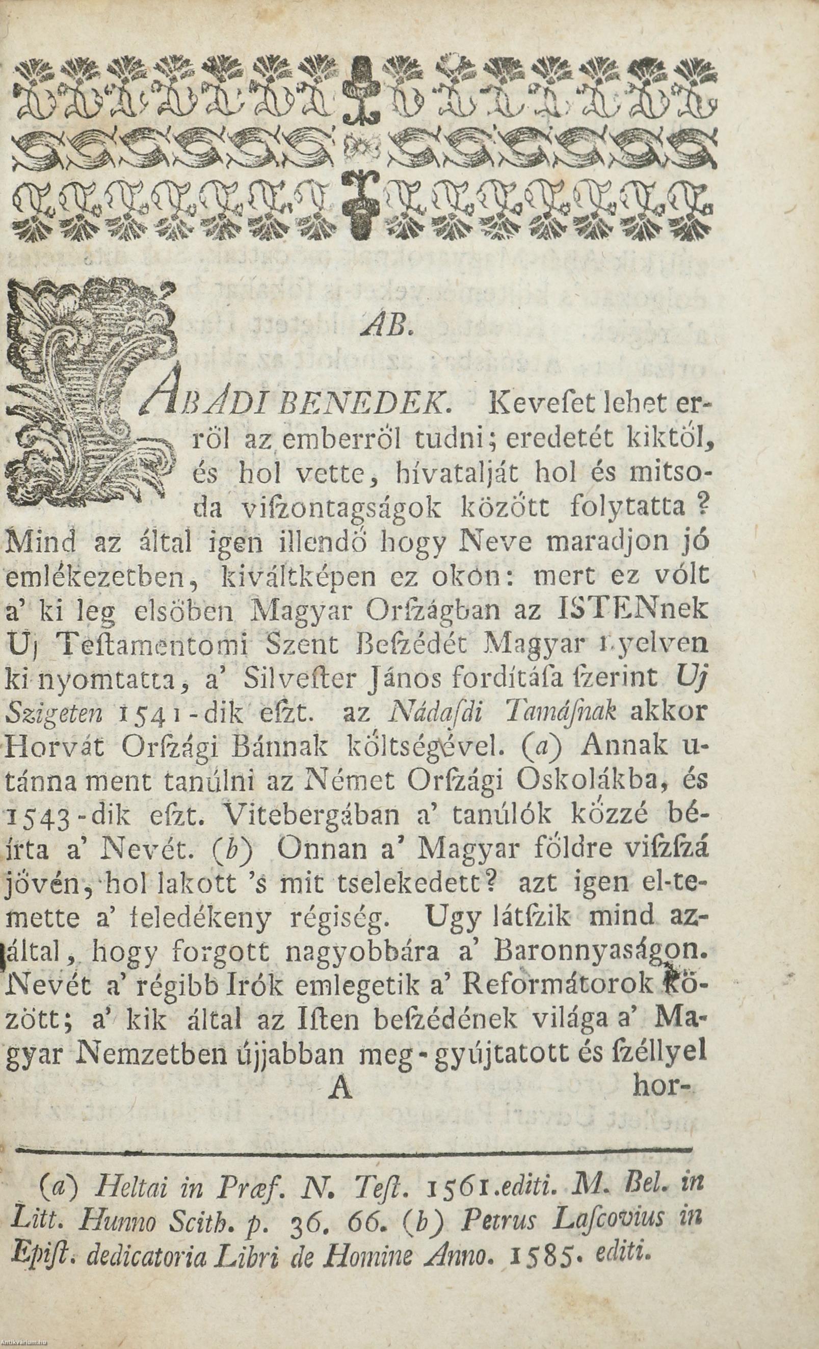 Avagy az Erdélyben és Magyar-országban élt tudos embereknek, névezetesebben a' kik valami, világ eleibe botsátott irások által esméretesekké lettek, 's jo emlékezeteket fen-hagyták historiájok mellyet sok esztendők-alatt, nem kevés szorgalmatossággal egybe-szedegetett, és az mostan élöknek, 's ez-után következendöknek tanuságokra, 's jora-valo felserkentésekre közönségessé tett