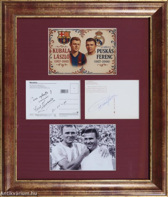 Az egyik spanyol képeslapon Kubala László tollal írt dedikációja olvasható: "Con afecto y carino Laszlo Kubala 21-04-97. / Szeretettel és megbecsüléssel Kubala László 1997. 04. 21.", a másik spanyol képeslapon Puskás Ferenc tollal írt aláírása látható.