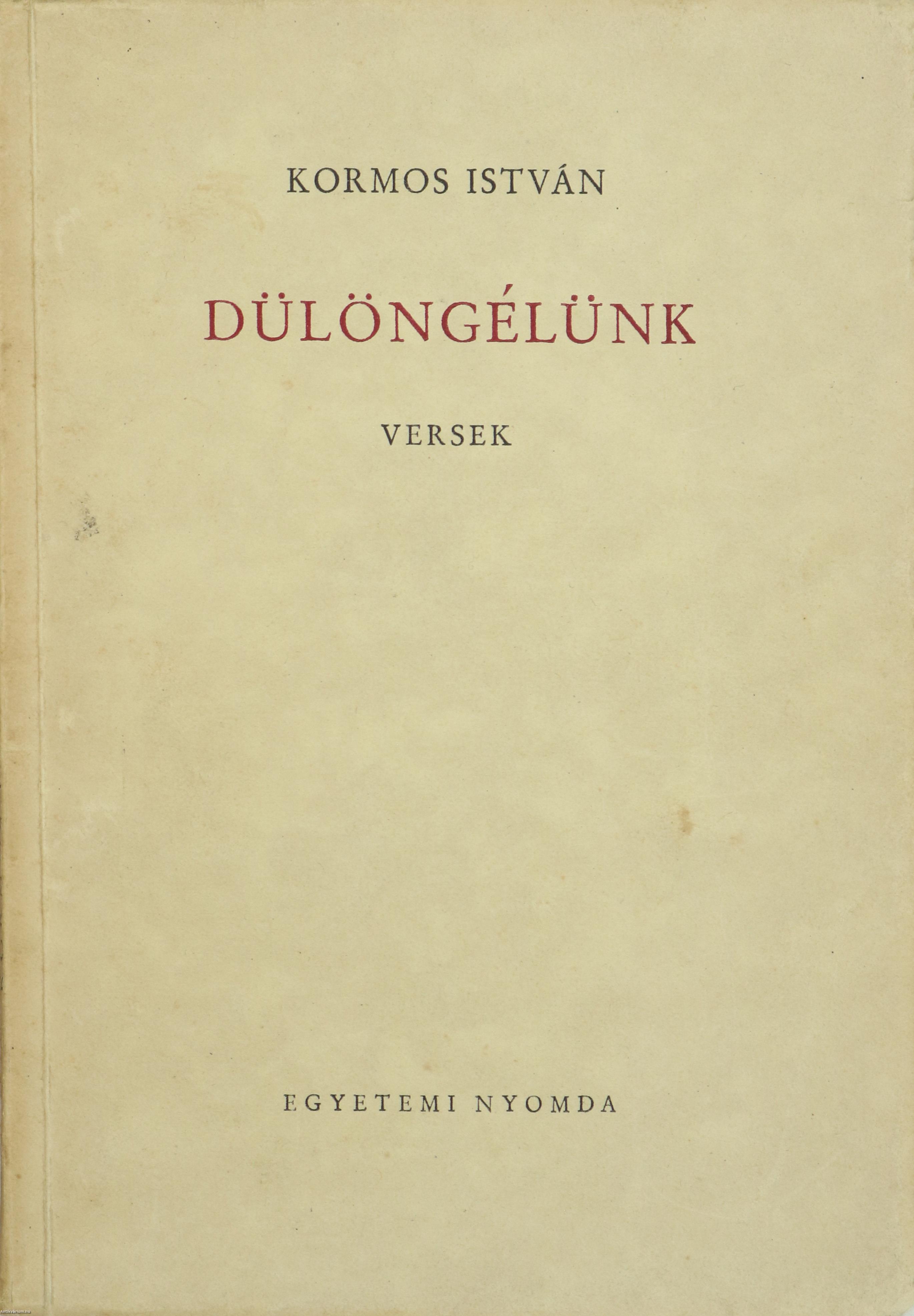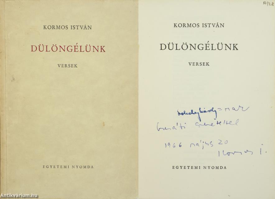 Szerző által dedikált példány. Első kiadás. Dülöngélünk. Versek. Írta: Kormos István.