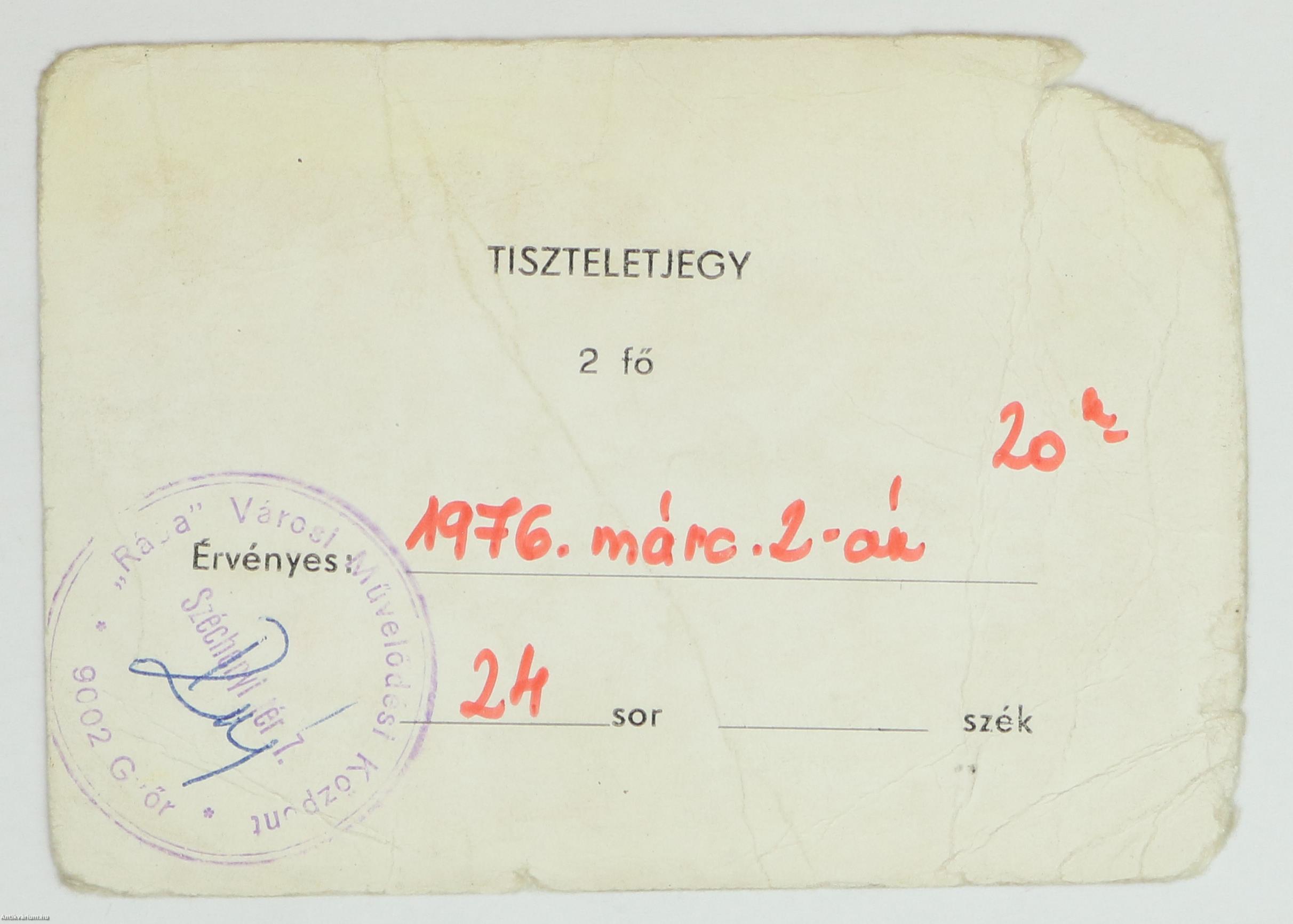 A dedikációt az ismert színész, egy a Rába Városi Művelődési Központban tartott előadása tiszteletjegyére írta. A korabeli lapok beszámolói szerint Latinovits 1976. március 2-án Győrben, a Művelődési Központban tartotta különleges önálló estet, amelyen többek között Illyés Gyula, József Attila és Vörösmarty Mihály művei hangzottak el. A műsor részét képezte a Kaláka Együttes hét önálló száma is.
