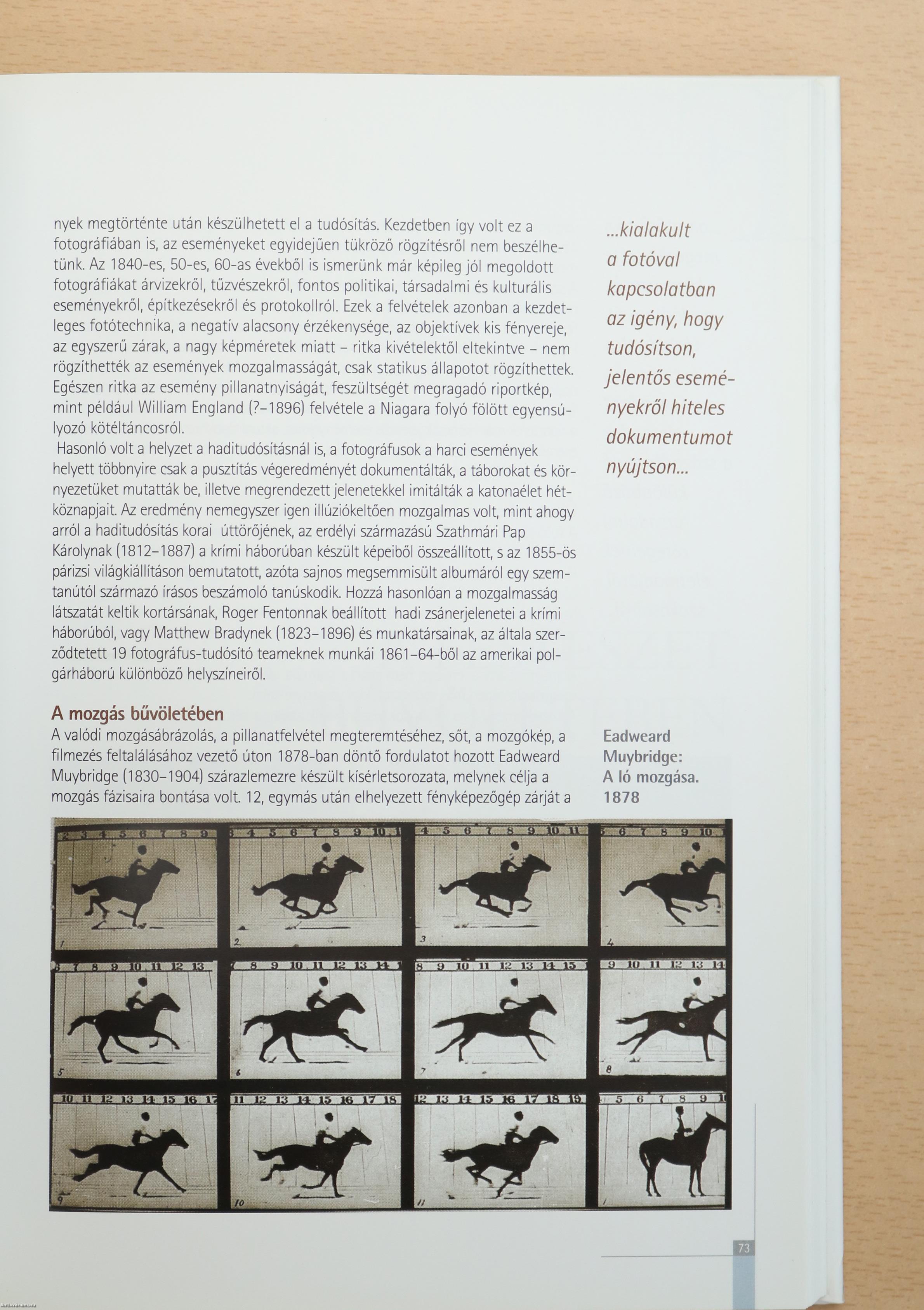 A kötet megjelenésének, a fotótörténet megismerésének lehetősége különös hangsúlyt kaphat most, amikor az elektronika forradalmi változást hozott a képalkotásban, a klasszikus fotográfia sokak számára már valóban történelem. A fényképezéssel foglalkozók jelentős része talán soha nem járt fotólaborban. Ennél sokkal lényegesebb azonban a képi tartalom értelmezése, a vizuális nyelv ismerete. A hazai oktatás több évtizedes lemaradása korábban is hátrányosan érintette a fotográfiát, akkor, amikor a mozgókép felsőfokú oktatása világszínvonalú lehetett. Erre az elmaradottságra érkezett meg korunk egyre bővülő képáradata. A viharos fejlődés miatt különösen fontos ez a kiadvány, mert nagy segítséget nyújthat azoknak az érdeklődőknek, akik alkotó módon, az egyéniségüknek megfelelő fotografálás irányába szeretnének haladni.