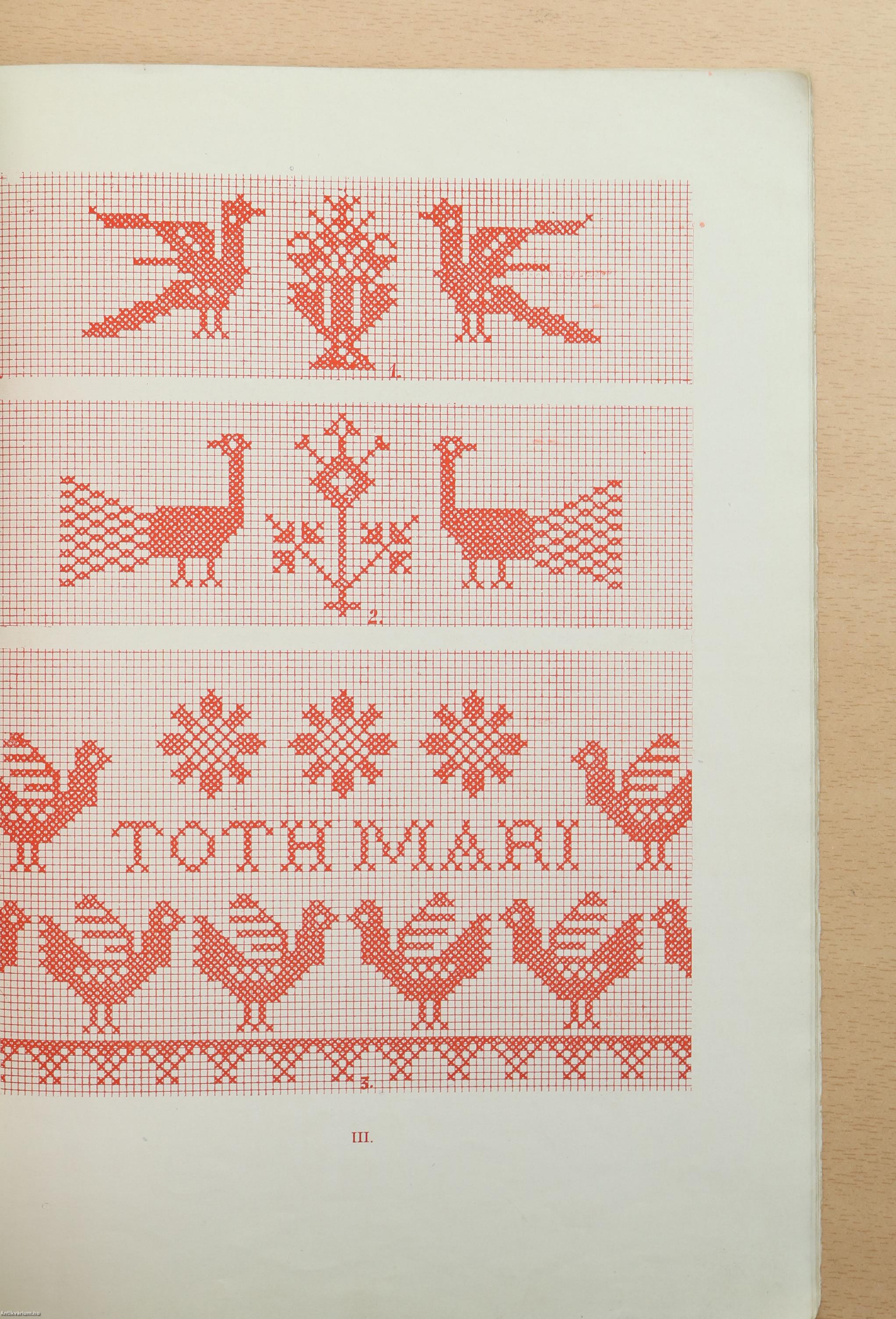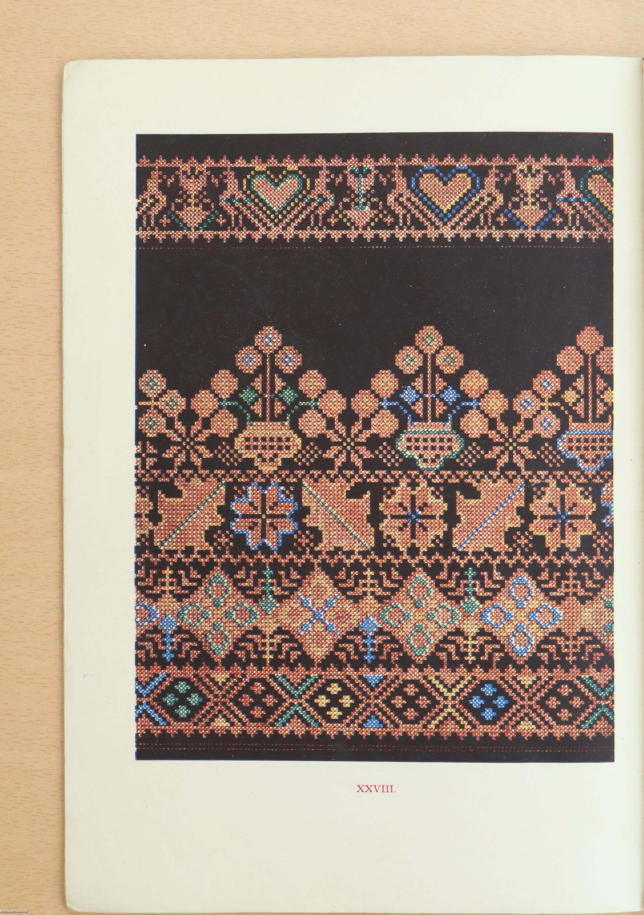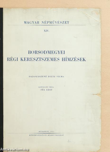 Amikor most a sorozat folytatásaként XIV. füzetünket közzétesszük, elsősorban szintén gyakorlati célokat tartva szem előtt, nem hagyhatjuk szó nélkül, hogy az első 13 füzet után többé nem szerénykedve, kéziratképpen jelentetjük meg füzeteinket, hanem - hála kormányzatunk kultúrpolitikájának - nyomdai szempontból kifogástalan kivitelben, sőt olyan szinezésben - tehát két- és háromszínű nyomattal, - amilyent az anyag megkívánt. Igy a borsodmegyei régi keresztszemes hímzéseket olyan formában és színben mutatjuk be az érdeklődőknek, amilyenek azok a valósában.