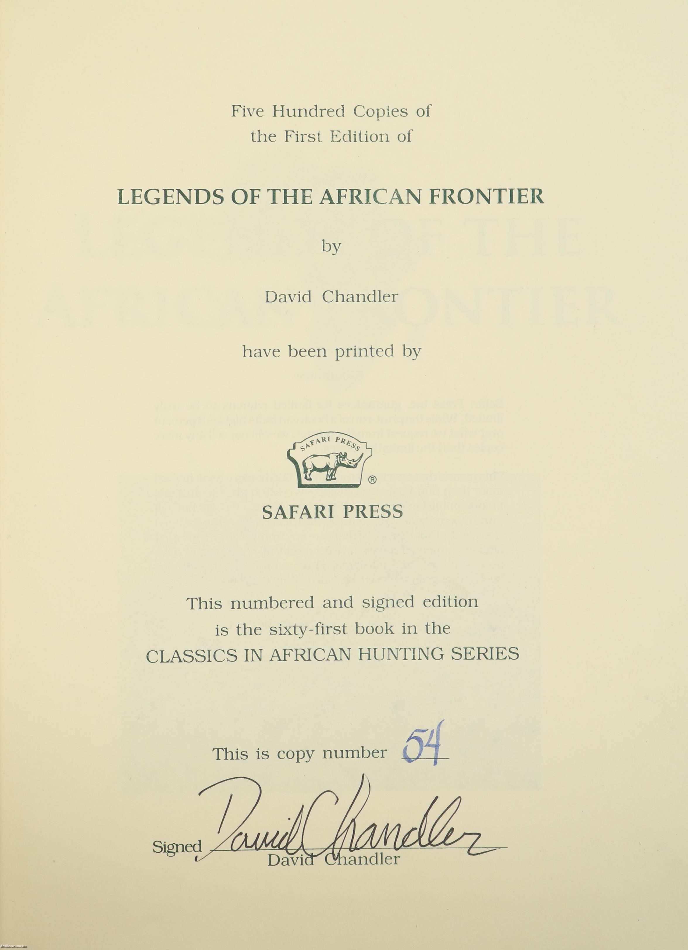 A Legends of the African Frontier első kiadása 500 számozott példányban készült. Ez az 54. számozott példány.