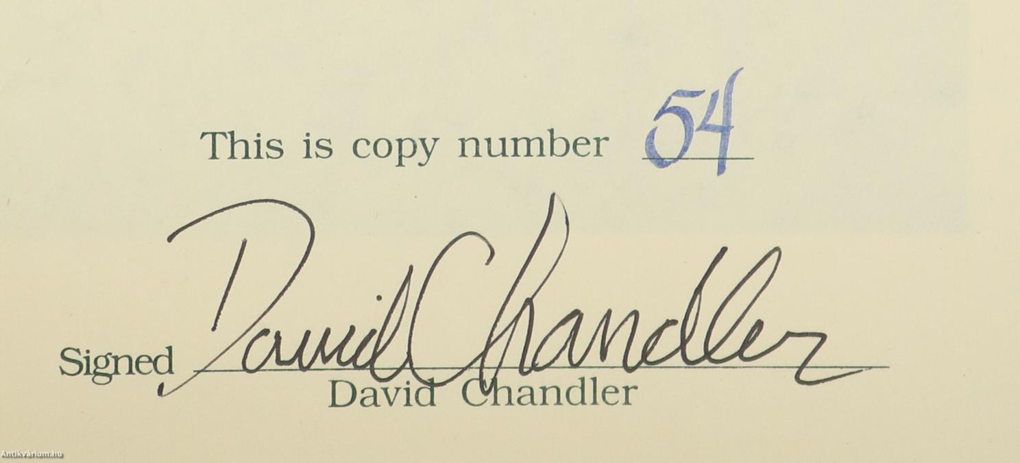 Az előlap előtti lapon, a számozás alatt a szerző David Chandler tollal írt, jól olvasható aláírása látható.
