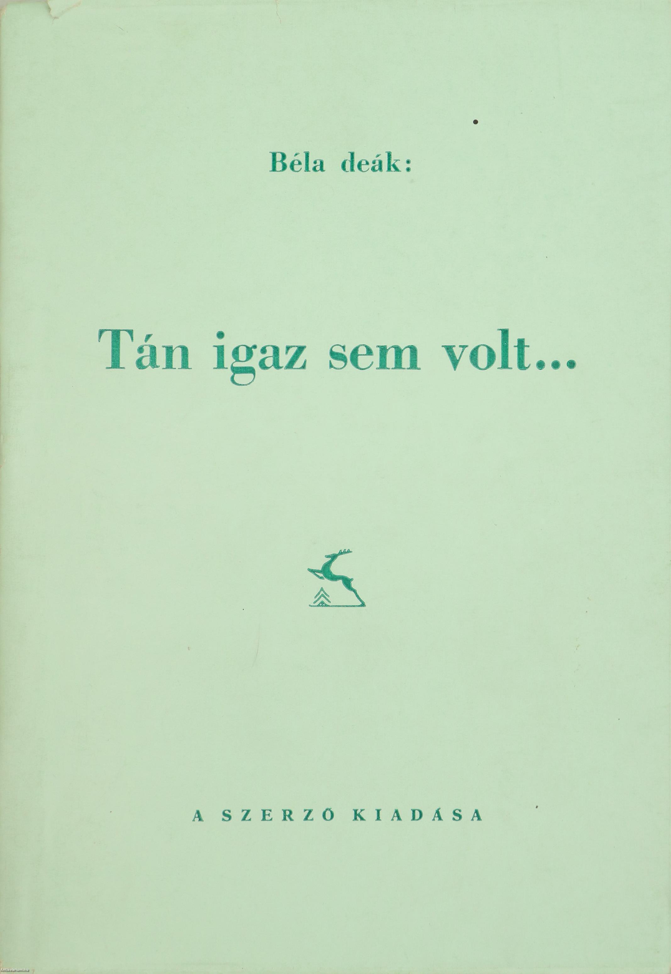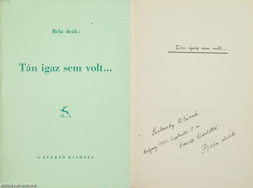Szerző által dedikált példány. Első kiadás. Talán igaz sem volt... Írta: Béla deák.