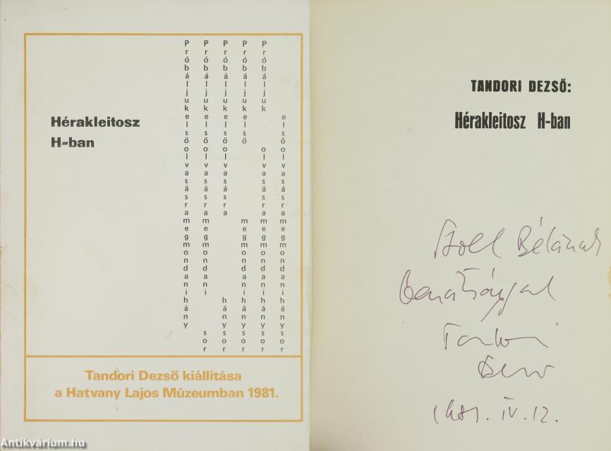 Hérakleitosz H-ban. Írta: Tandori Dezső.