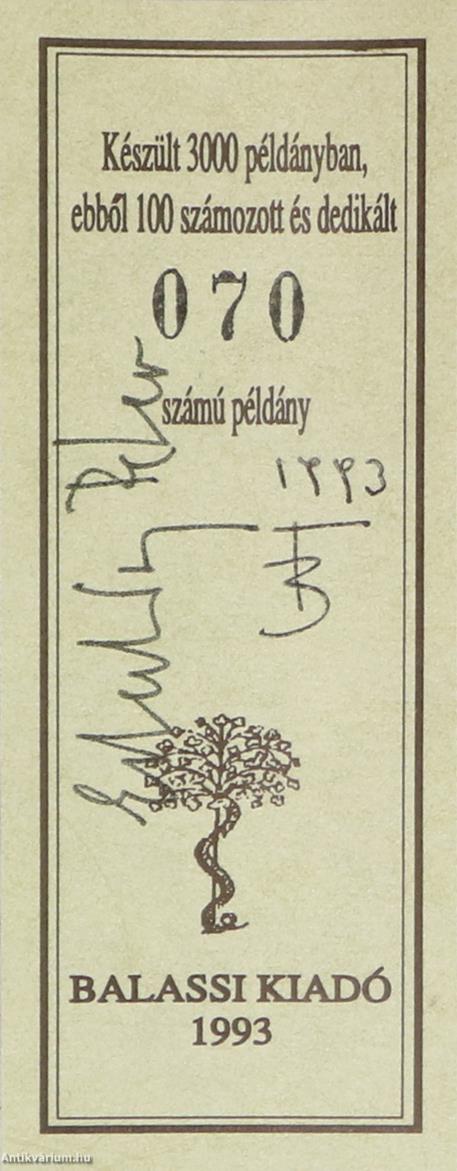 "Készült 3000 példányban, ebből 100 számozott és dedikált." Ez a 070. számú példány.