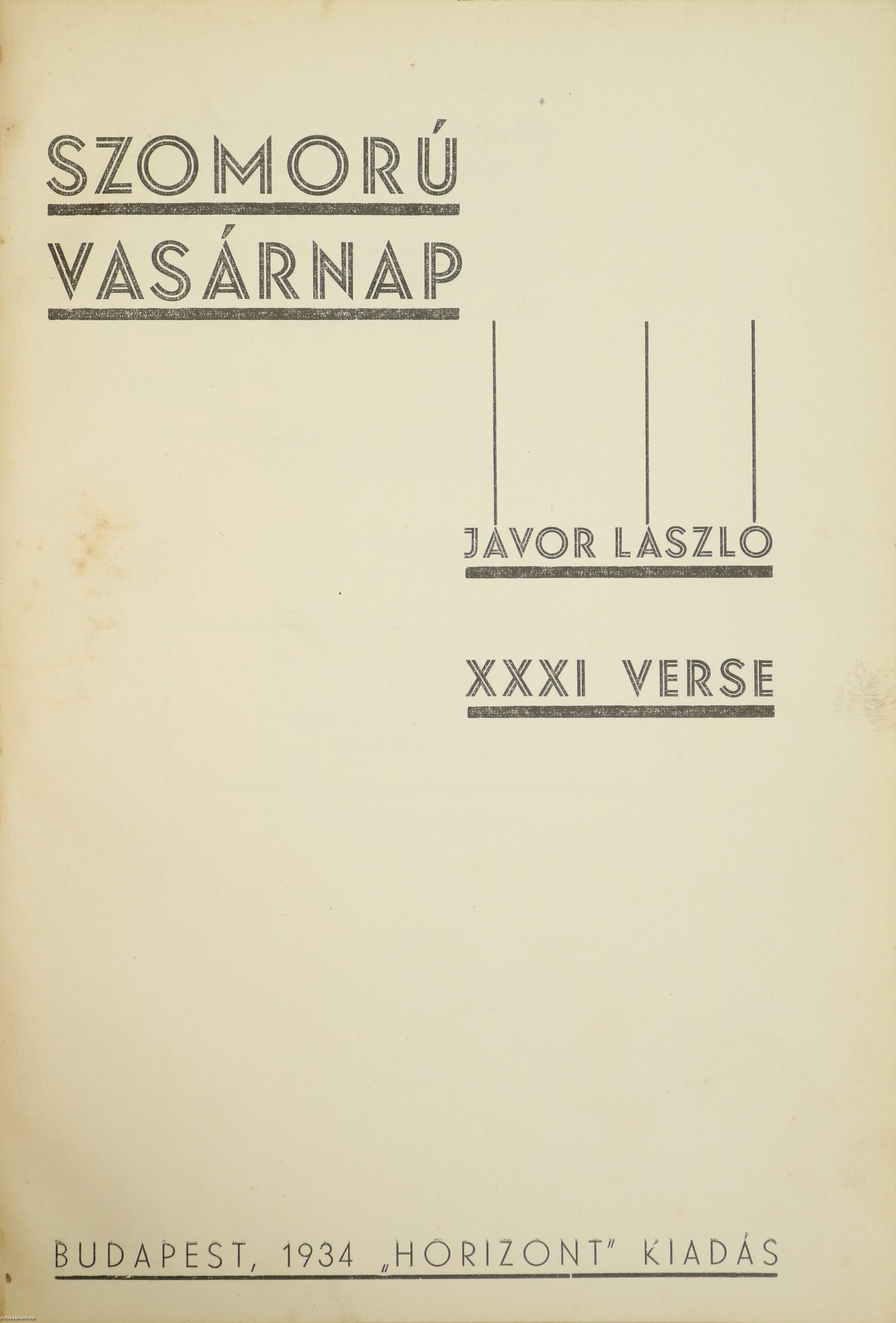 Szerző által dedikált példány. Első kiadás. Szomorú vasárnap. Jávor László XXXI verse.