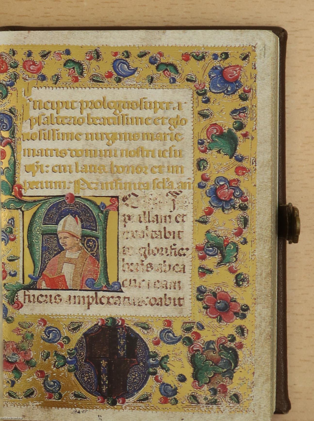 Szép állapotú példány. Fakszimile kiadás. Kiadványunk II. János Pál pápa magyarországi látogatása alkalmából jelenik meg. A fakszimile kötet bordázott gerincű, aranyozott bőr kötésű (fémcsattal), aranymetszésű lapélekkel. A díszdoboz velúr hatású, a kísérőtanulmány fűzött papír kötésű. A kísérőfüzet nyelvei: magyar, angol, német, olasz. Ritka! A kapocs egyik fele hiányzik.