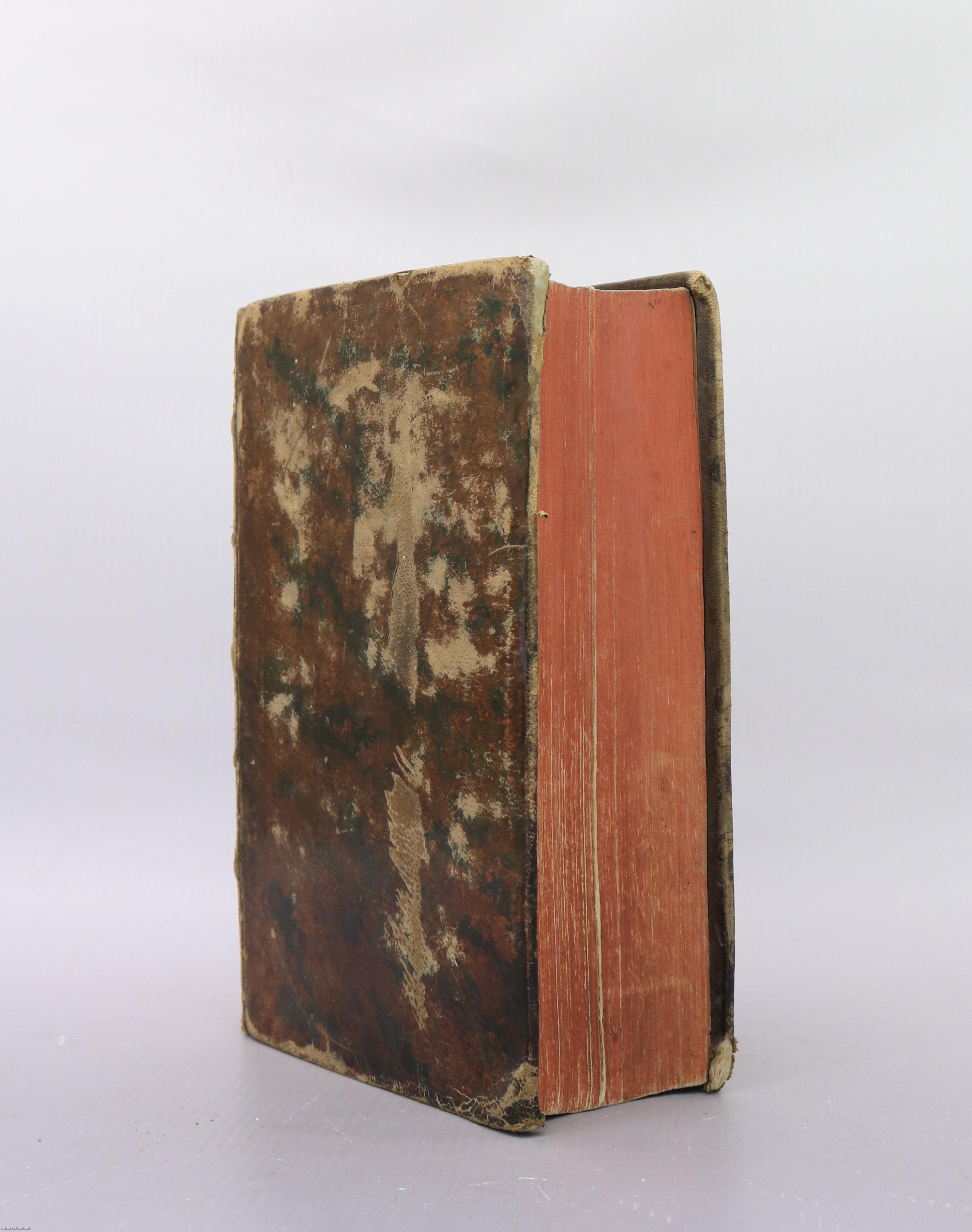 Korabeli egészbőr kötésben lévő példány feliratozatlan, kopottas címfedéllel és hátlappal, aranyozott feliratos, gazdagon díszített, néhol kopott, ötbordás régi gerincvignettát tartalmazó könyvgerinccel, korabeli előzéklapokkal, kissé foltos belívekkel, körbe színezett lapélekkel, hiánytalan állapotban.