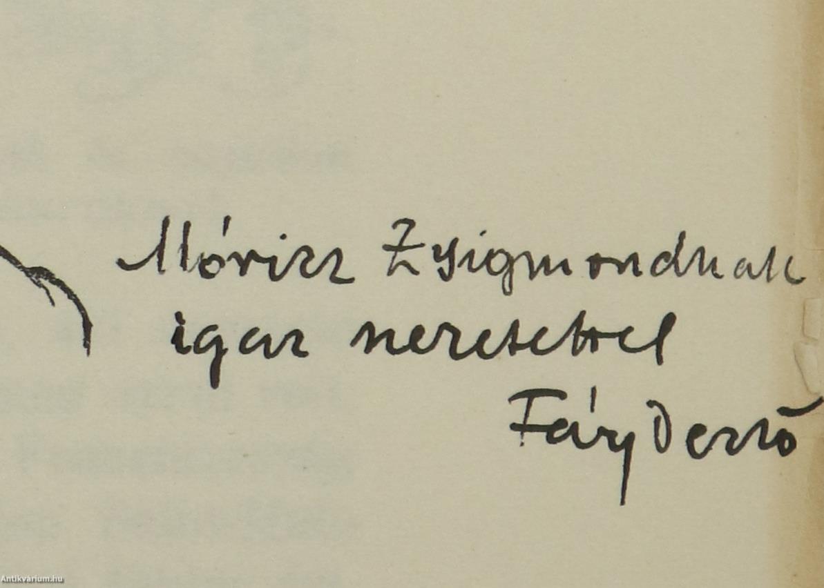 A sorozat megjelent köteteinek listáját és szöveg közti, fekete-fehér, feliratozott illusztrációkat tartalmazó kötet. Címlapon a grafikus, Fáy Dezső kézzel írt, névre szóló, dátum nélküli, aláírt dedikációja olvasható: "Móricz Zsigmondnak igaz szeretettel Fáy Dezső".