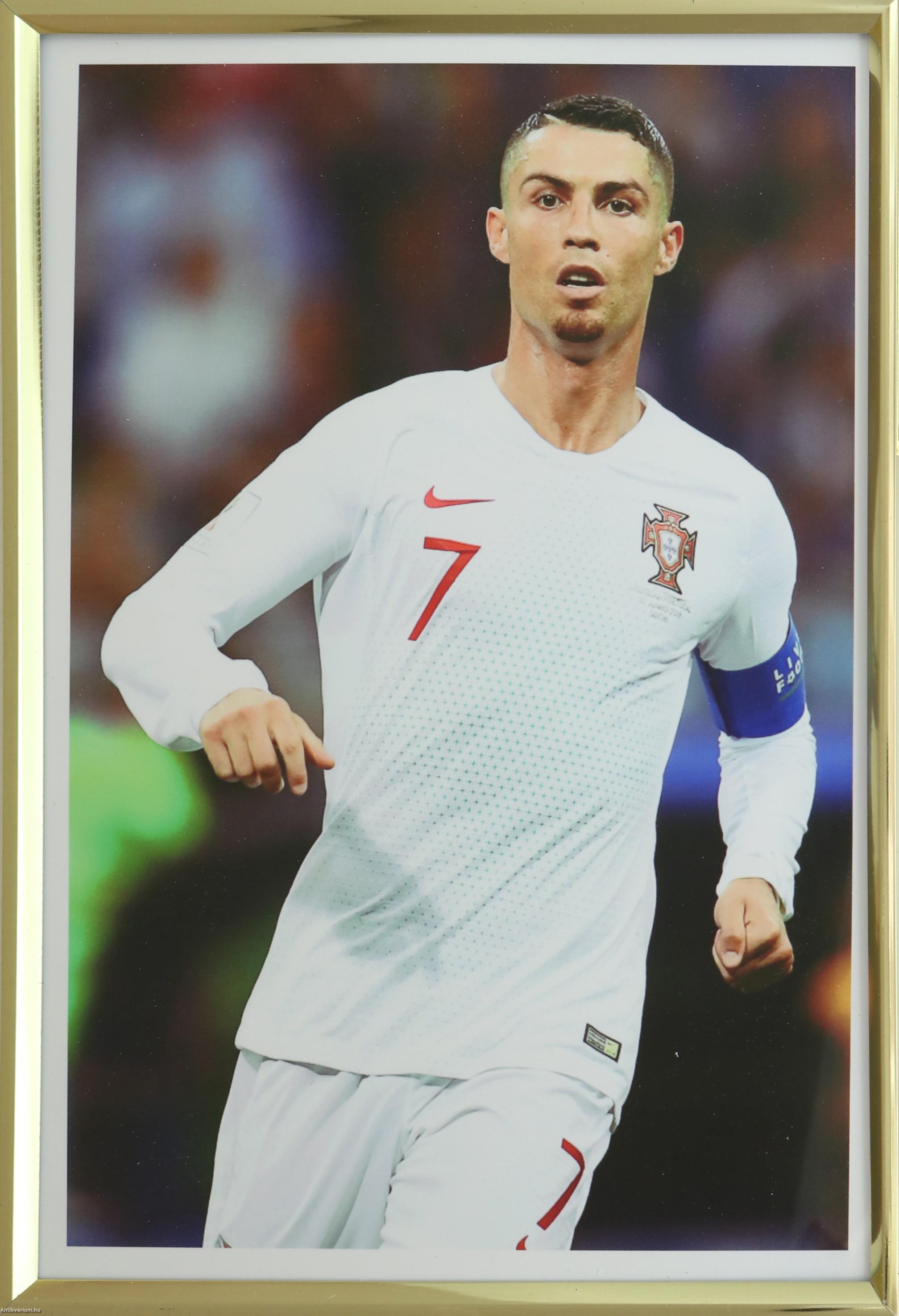 2. Cristiano Ronaldot ábrázoló 27,5 x 19 cm-es színes fénykép, 30,5 x 21,5 cm-es aranyozott műanyag képkeretben.
