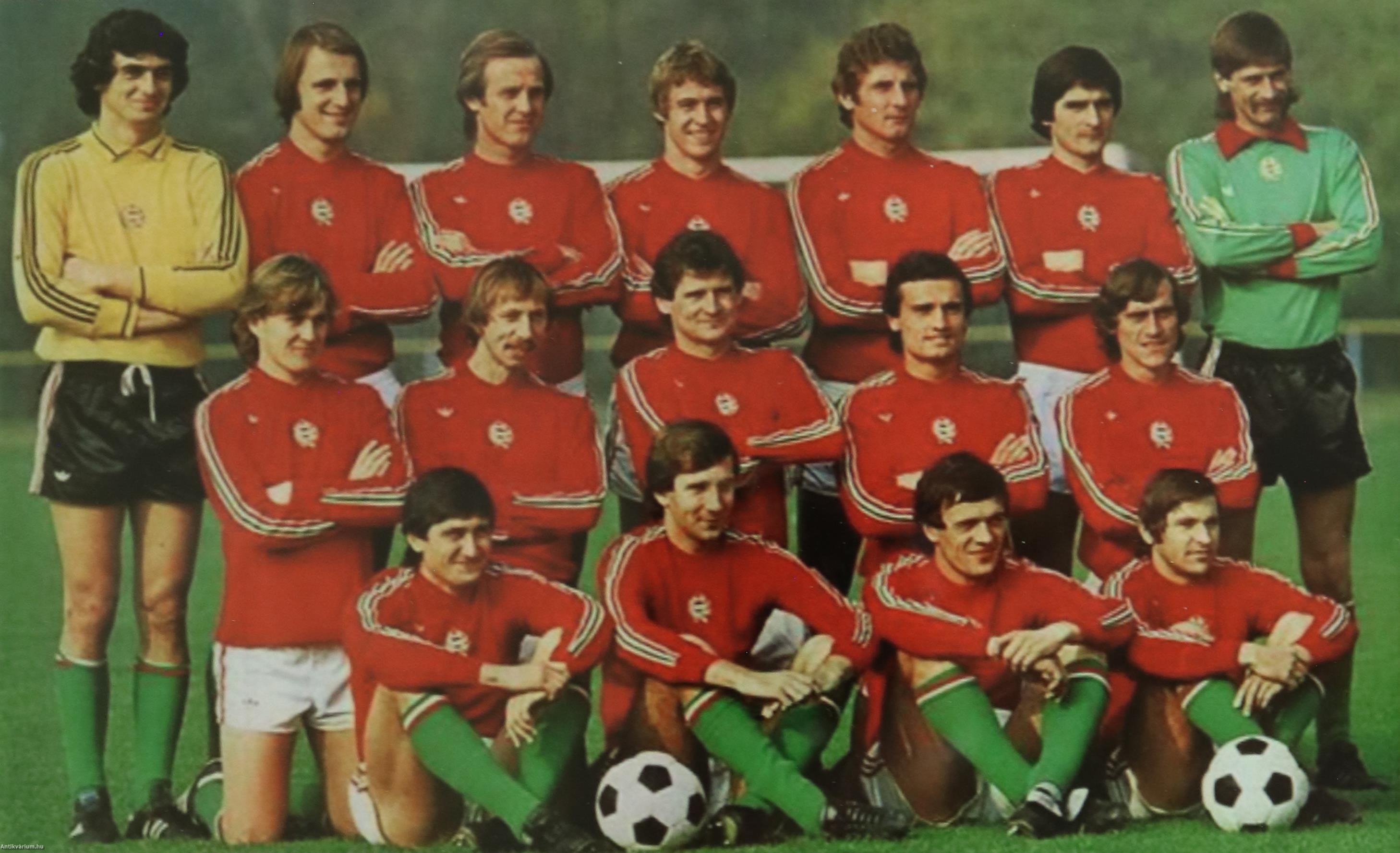 1978-as Magyar Labdarúgó Válogatott következő 15 tagjának aláírása látható: