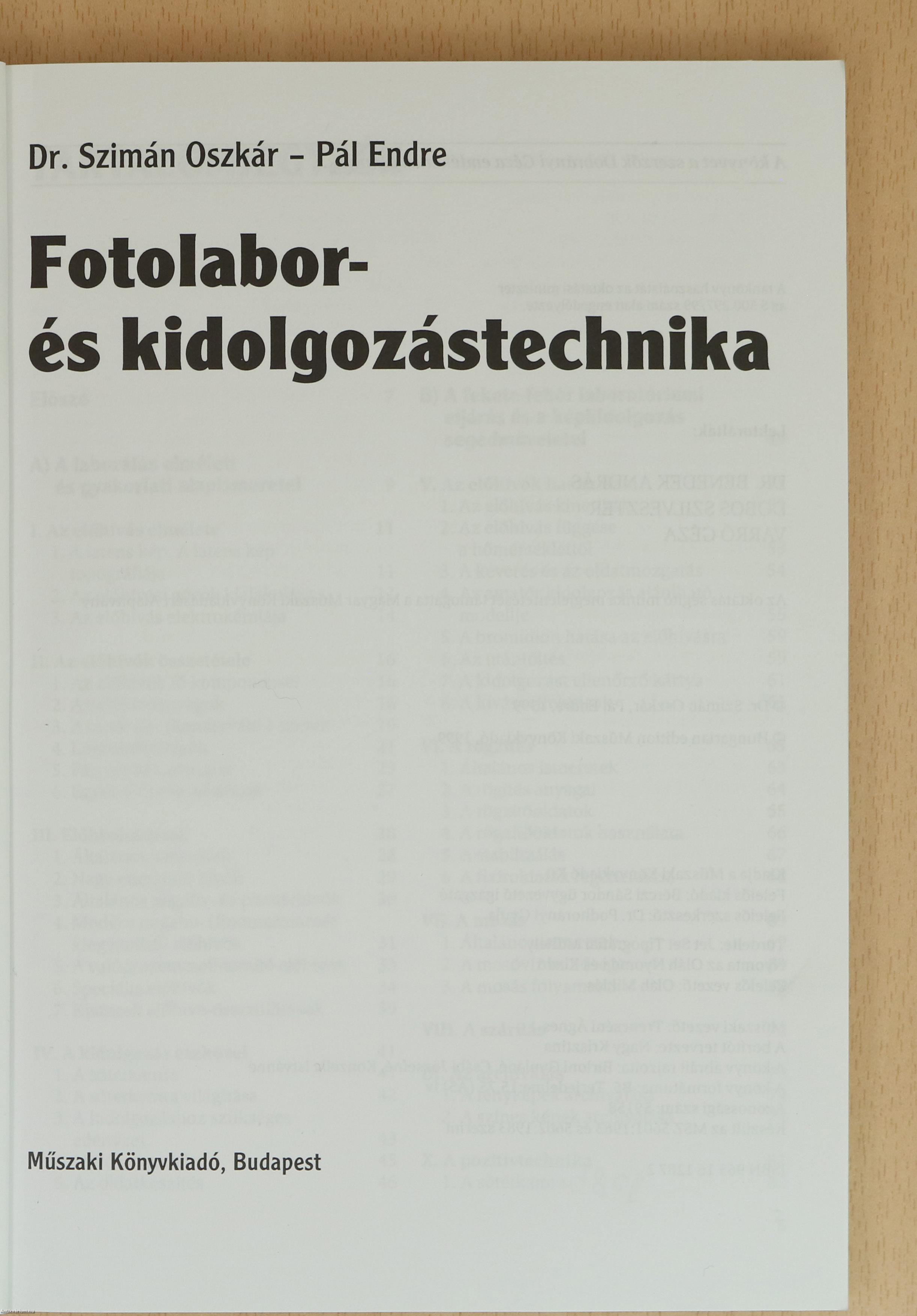 | A fekete-fehér laboratóriumi eljárás és a képkidolgozás segédműveletei | 49 |