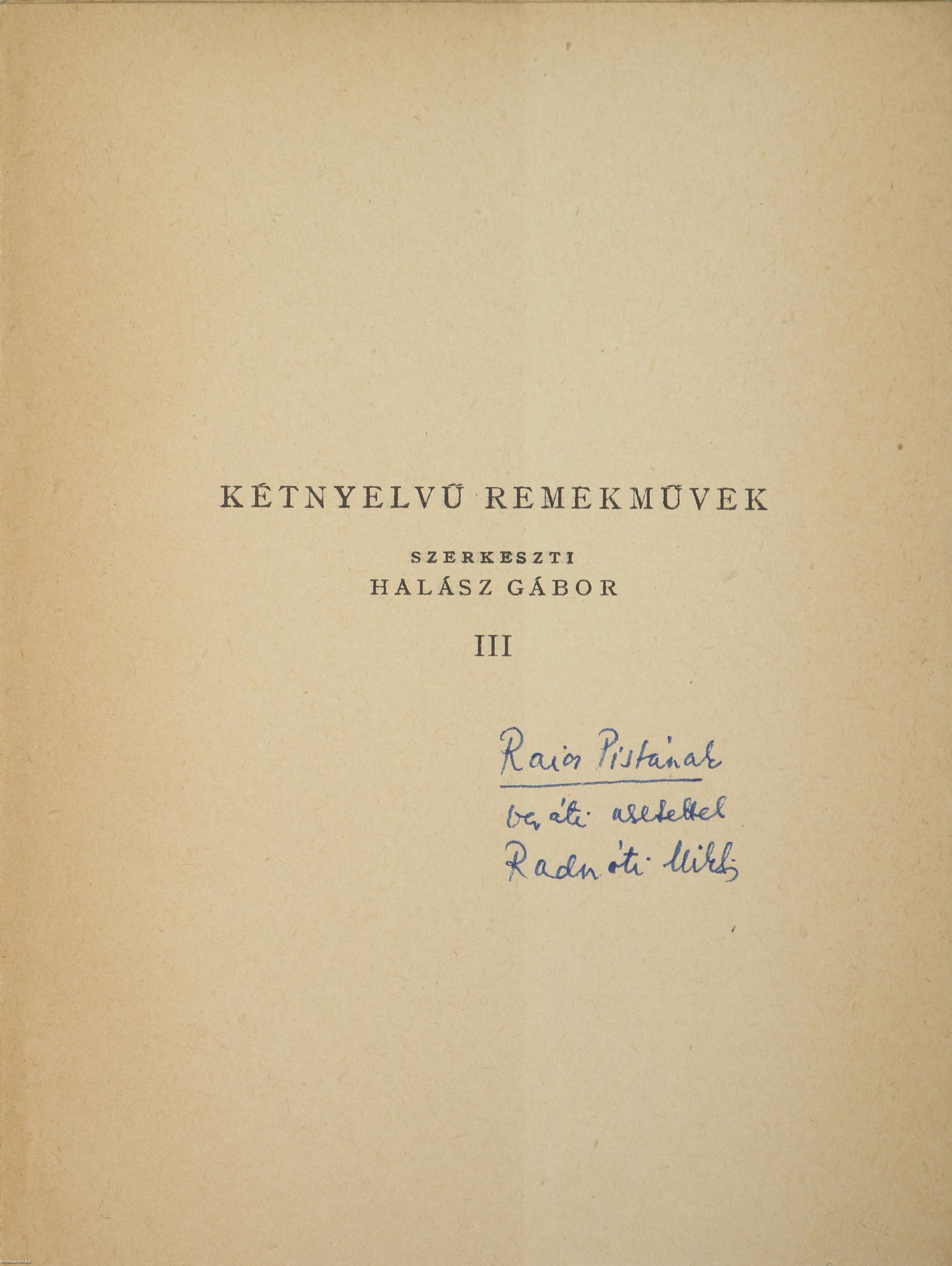 Raics Pistának / baráti szeretettel / Radnóti Miklós