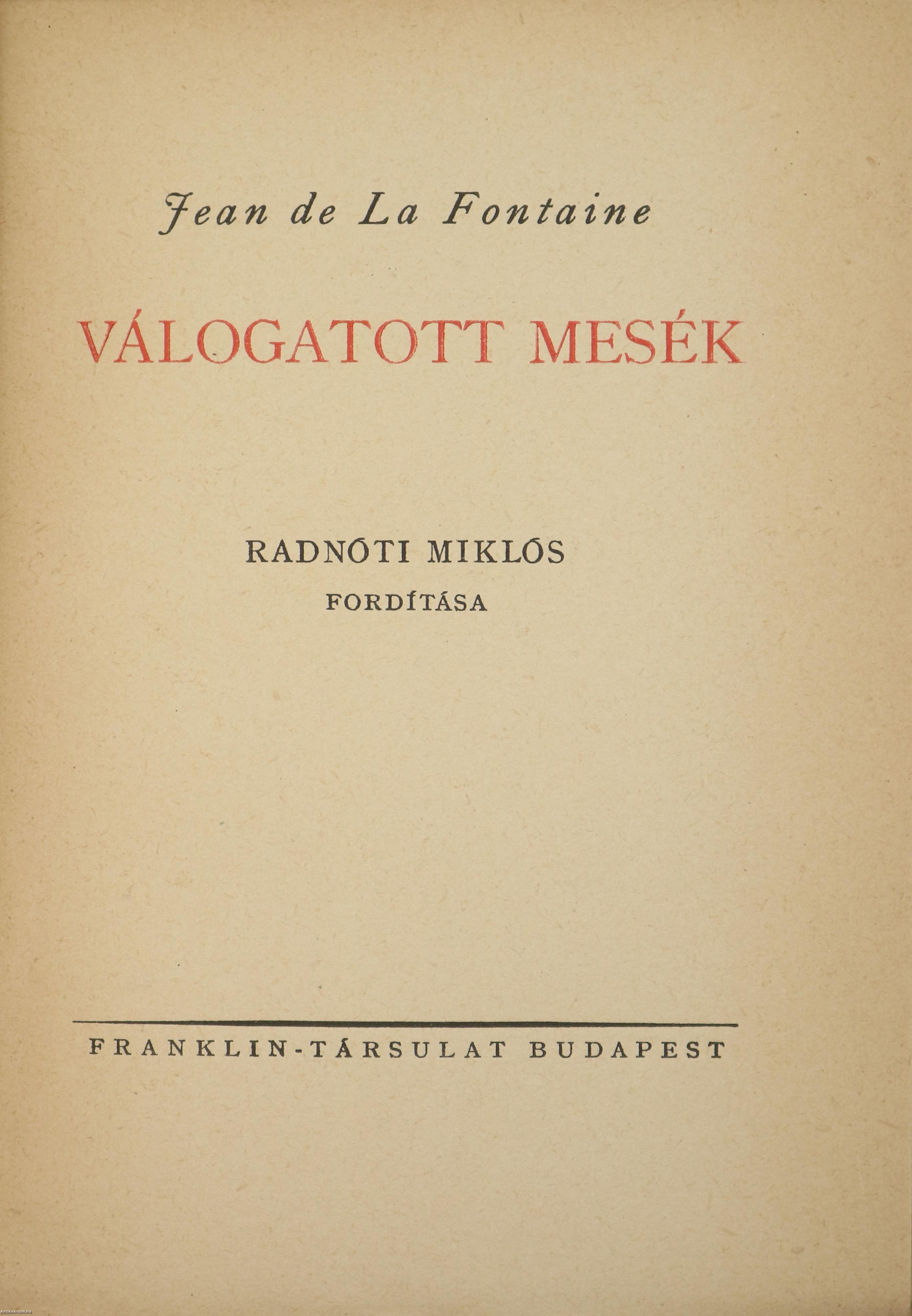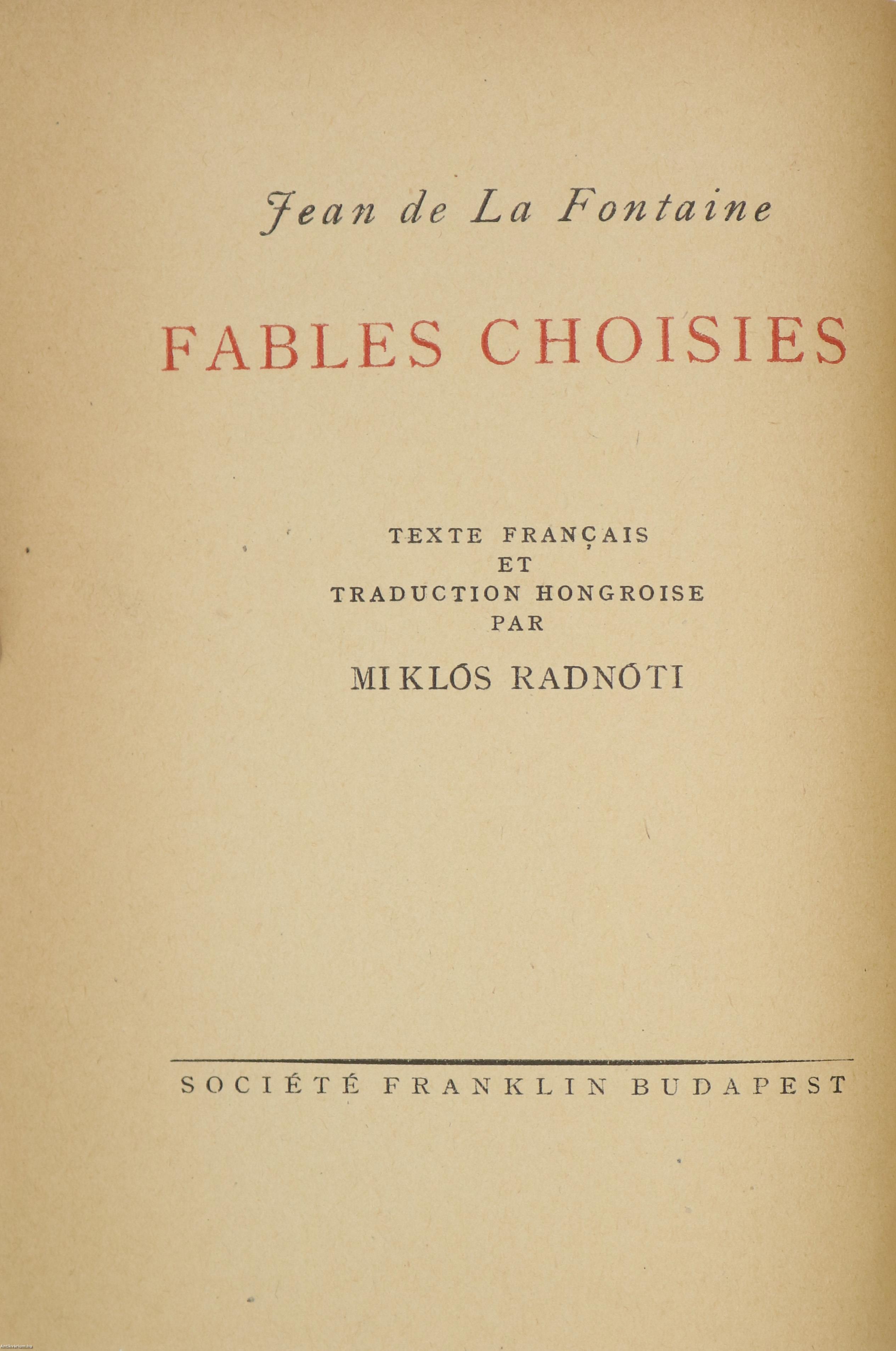 Az egyik legnehezebben készült Radnóti-kötet – mert az önálló műfordításokat is közéjük soroljuk – közel két évig formálódott, és Radnóti életében ez jelent meg utoljára. A költő már 1942 tavaszán elkezdte a versek fordítását, de a munka kényszerűen megszakad: Radnótit behívták. „Abbamarad a Lafontaine-fordítás”, írta 1942. július 1-jén naplójába. (Radnóti Miklós: Napló, 213.) A második munkaszolgálatból visszatérve fejezte csak be a verses mesék fordítását, s időközben – Halász Gábor ajánlására – a kötet kiadásának joga átkerült a Franklin társulat „Kétnyelvű remekművek” sorozatába; ezért a Rózsavölgyi méltányosan szerződést bontott vele. Egy 1943. július 26-án írt levélben arról tesz említést, hogy „ősszel húsz La Fontaine-Fable fordítása, kétnyelvű kiadásban” jelenik meg (idézi: Ferencz Győző: 584.), de a kötet végül csak karácsonyra látott napvilágot. A második kiadásához előszót író Sőtér István véleménye szerint a „fordítások egynémelyike azonban a megíratlan maradt Radnóti-versek helyett szól, s az állatmesék ürügyén sokkalta bensőbb fájdalmak, sokkalta mélyebb nyugtalanságok látnak napvilágot, hogysem e művekben az évszázadok óta szunnyadó alkotó, s az imént még Apollinaire-t fordító magyar költő találkozását holmi véletlen érdeklődés – amolyan műfordítói kalandvágy gyümölcsének tekinthessük”, ezért is, hogy „a La Fontaine-kötet Radnóti műfordítói pályájának csúcspontja” (Sőtér István: La Fontaine és Radnóti Miklós. In: La Fontaine: Válogatott mesék. Ford.: Radnóti Miklós. [2. kiad. Bp., 1947.] I–VIII.).