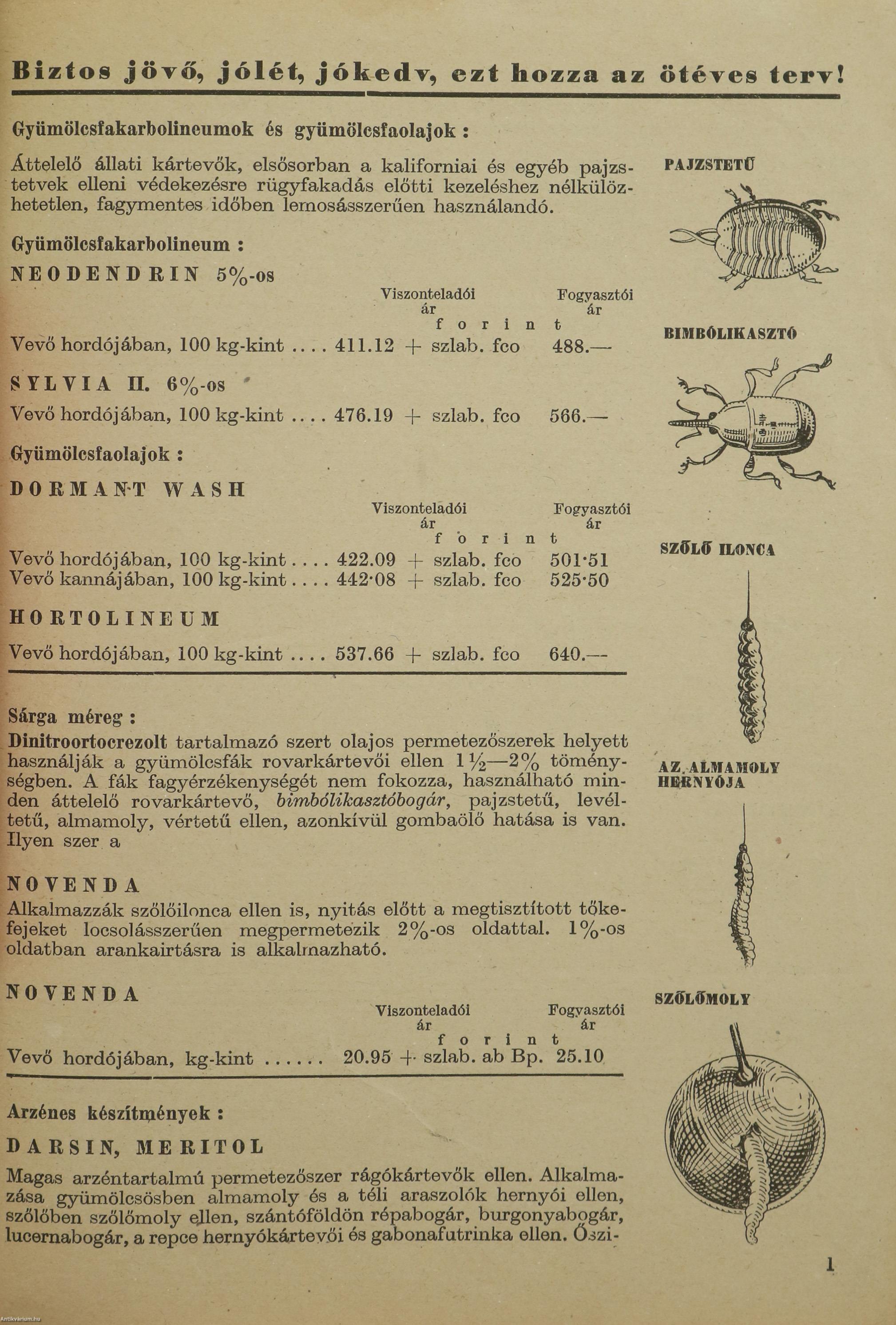 Növényvédelmi tanácsadó és árjegyzék. Kiadja: a Műtrágya és növényvédőszer értékesítő N. V..