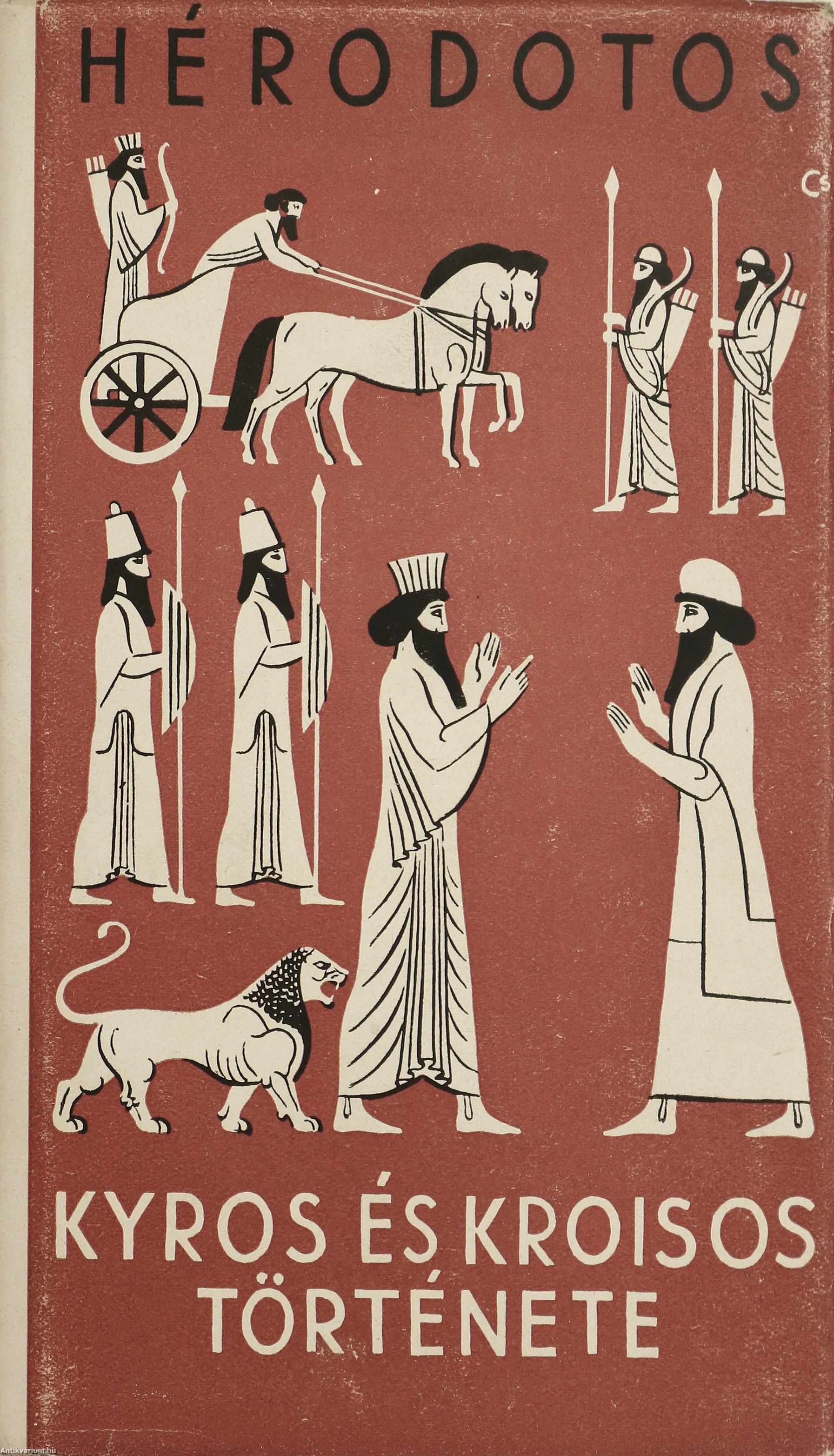 Fordító által dedikált példány. Kyros és Kroisos története. Írta: Hérodotos. Fordította: Devecseri Gábor. A címlapon a fordító, Devecseri Gábor tollal beírt, névre szóló dedikációja olvasható: "F. K.-nak baráti szeretettel Devecseri Gabi. 1946. IV. 07.". Ez a könyv a Hungária nyomdában készült 1943 végén. Walbaum antikvából szedték, diósgyőri famentes papirosra nyomták. A burkoló és borító Cseniczky Tihamér munkája. Bevezetéssel és jegyzettel kiegészített kötet. Kiadói félvászon kötésben lévő példány feliratozatlan, mintás címfedéllel és hátlappal, aranyozott feliratozású könyvgerinccel, hiánytalan, jó állapotban, feliratos, illusztrációval ellátott, fülszöveges kiadói borítófedélben. A fordító, Devecseri Gábor (Budapest, 1917. február 27. – Budapest, 1971. július 31.) Kossuth- és kétszeres József Attila-díjas költő, író, műfordító, klasszika-filológus. A Nyugat harmadik nemzedékének tagja. A Pázmány Péter Tudományegyetem görög-latin szakán diplomázott, 1942-ben tanári címet is szerzett. A Nyugat és a Szép Szó c. lapokban jelentek meg a versei. A '40-es években a Baumgarten Könyvtár könyvtárosa volt, ekkor kezdett ókori klasszikusokat fordítani (pl.: Plautus, Platón, Hérodotosz, Arisztophanész). Devecseri nevéhez fűződnek a homéroszi eposzok korszerű magyar fordításai is (Odüsszeia, 1947; Iliasz, 1952). 1945 után a budapesti tudományegyetem görög tanszékén irodalomtörténetet, a Színművészeti Akadémián művészettörténetet tanított. 1948-1954 között őrnagyi rangban oktatott irodalmat a Magyar Néphadsereg Tiszti Akadémiáján, majd 1953-1956 között a Néphadsereg Szabad Hazánkért c. irodalmi és művészeti folyóirat szerkesztőjeként tevékenykedett. A sztálinista diktatúra kiépülése idején belépett a kommunista pártba, és egyik vezéralakja lett a Révai József és Horváth Márton által irányított irodalompolitikának. Műfordításait a letisztult formaiság, a lényeglátás és a képgazdagság jellemzi.