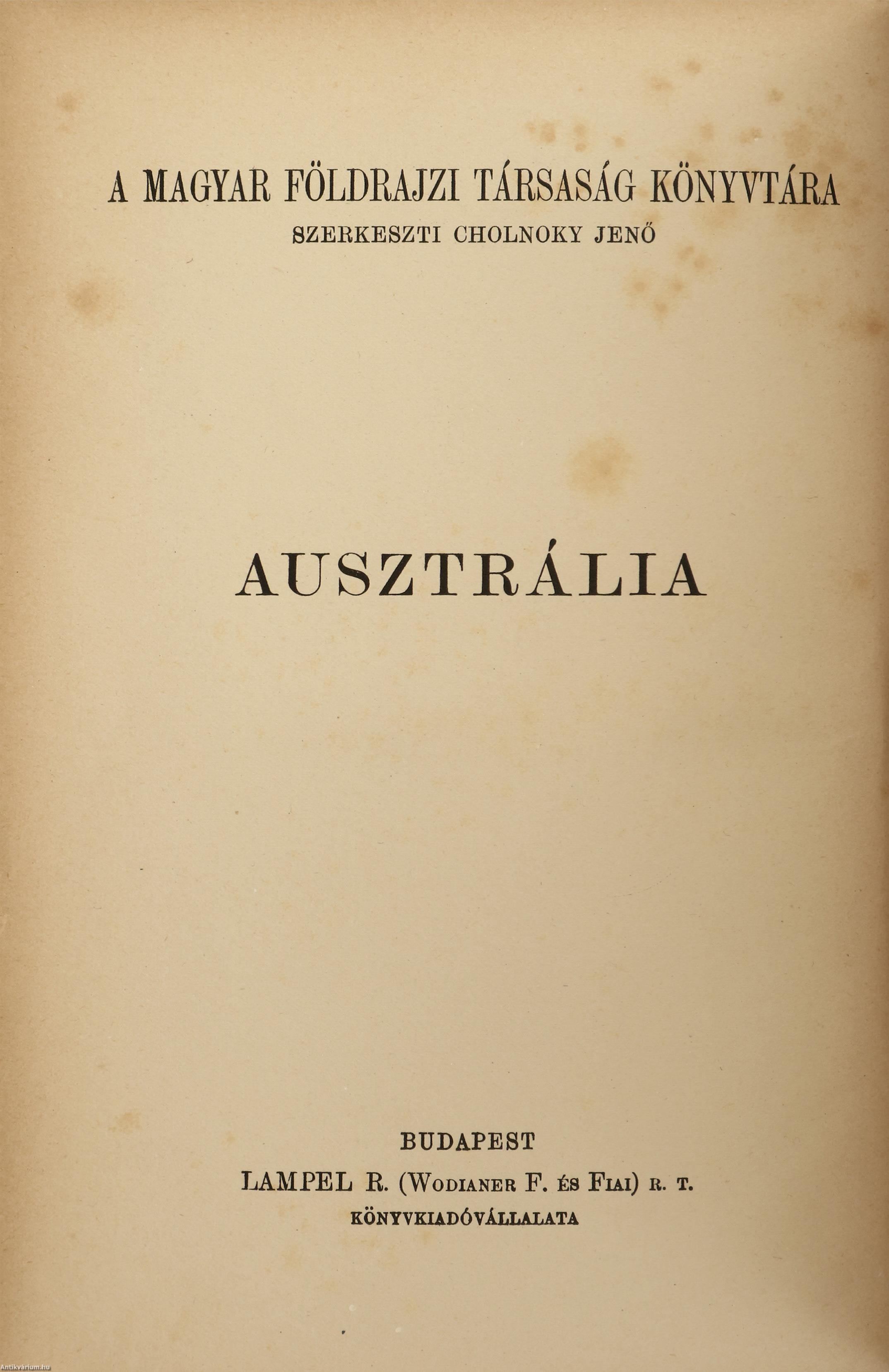 Ausztrália érdekesebb tájait és sajátszerű életviszonyait tárgyaló jelen munka szerzője összesen hét évet töltött a távoli világrészben.