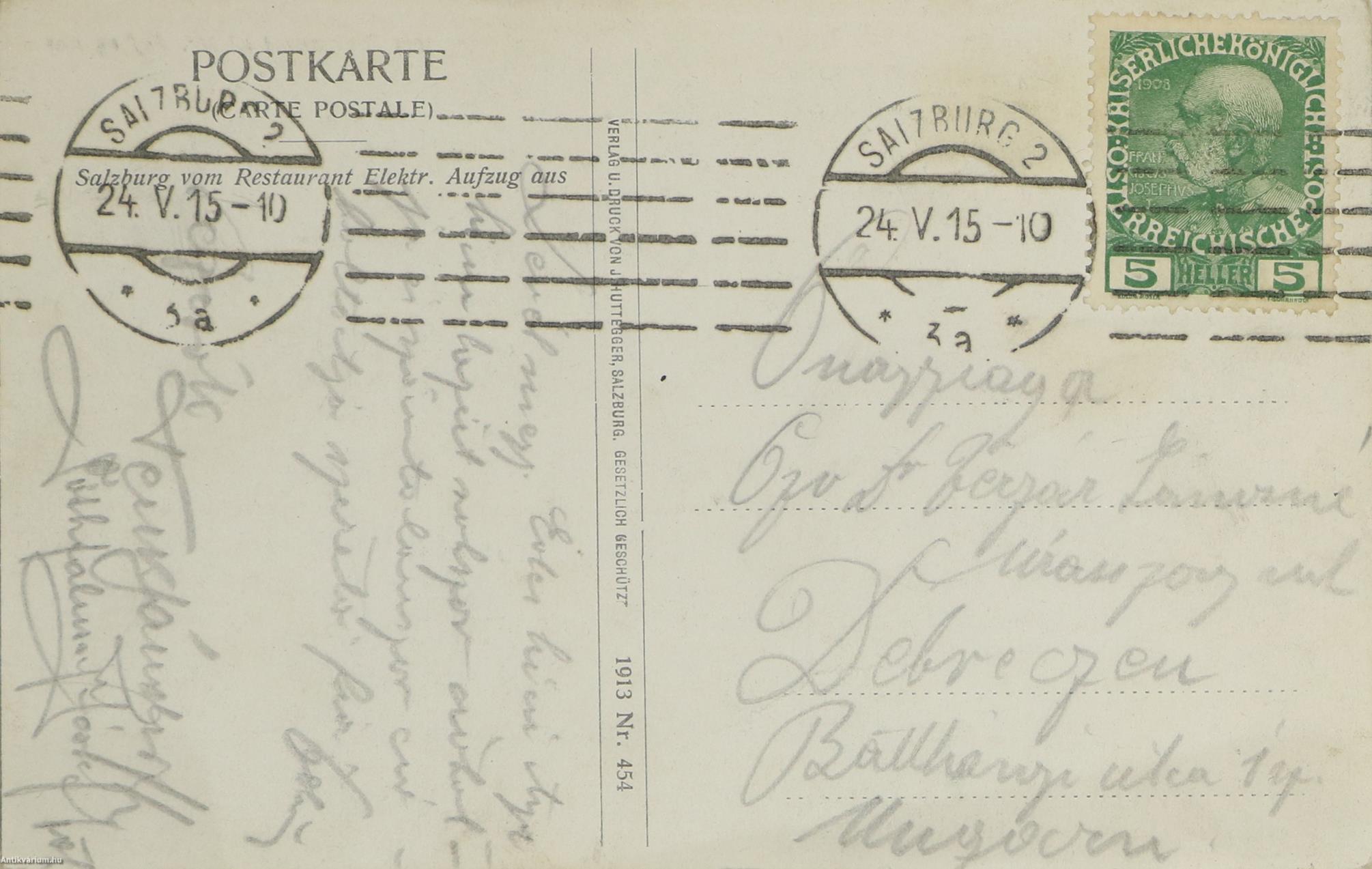 A képeslap a postai bélyegzés tanúsága szerint 1924. május 10-én Salzburgban került feladásra.
