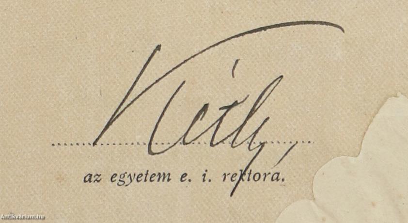 A Budapesti Királyi Magyar Tudomány-Egyetem 28 tanárának és vezető tisztségviselőjének – köztük Lóczy Lajos, Ballagi Aladár, Pikler Gyula, Thewrewk Emil, Vécsey Tamás és mások – autográf aláírásait tartalmazó példány.