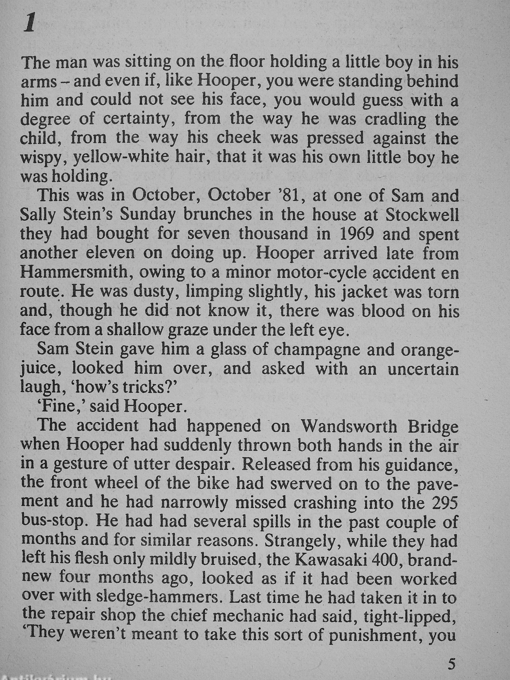 Bill Hooper is a product of the Sixties floundering in Eighties apathy. He's lost his wife and is in danger of losing his son. A former champion of feminism, now all he feels is a bitter rage against women.