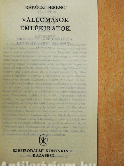 Vallomások, emlékiratok Vallomások, emlékiratok